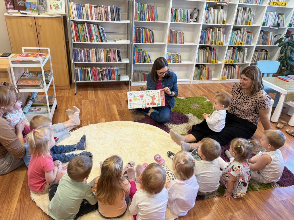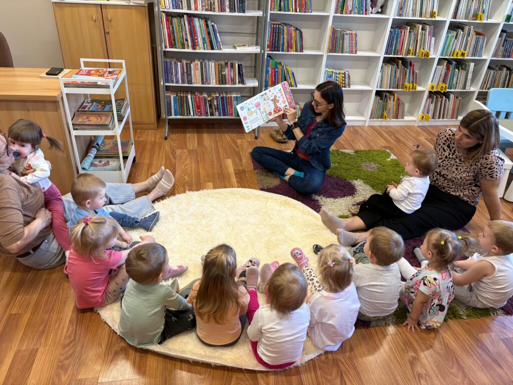 ,,NIEEE-DŹWIE-DŹ” – powtórzyła z drobną pomocą i nieśmiałością trudne słowo jedna z dziewczynek. A także ,,Zielona!” – powiedziała ta sama w odpowiedzi na pytanie o ilustracje w książce: ,,Jakiego koloru jest żaba?”. Zgadywanie było świetną zabawą!