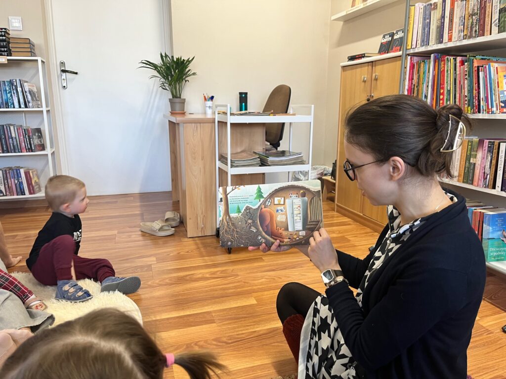 ,,Niedźwiedź zimą w gawrze siedzi, to obyczaj jest niedźwiedzi, i do wiosny tak się dzieje, że śpi smacznie choć nic nie je.” – brzmiał fragment książki. ,,Czy wiecie co to jest <<gawra>>?” – zapytała bibliotekarka. Dzieci pokręciły przecząco głowami, ponieważ nie znały tego słowa. ,,Gawra to miejsce, w którym w trakcie zimy przebywa niedźwiedź”- odpowiedziała.