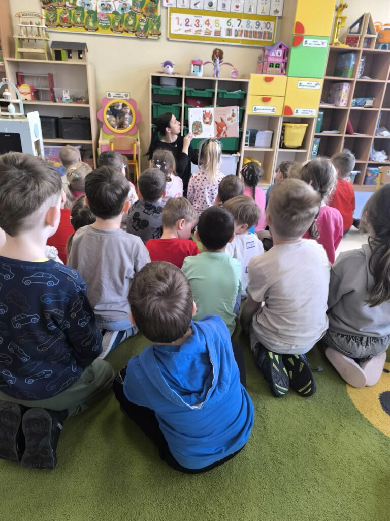 Grupy: „Żabki” oraz „Rybki” wysłuchały bajki M. Strzałkowskiej pt. „Szara Myszka i kolory”, z której dowiedzieli się, że warto cieszyc się z tego co mamy. Główna bohaterka- mała mysz, która była niezadowolona ze swojego koloru futra, szybko zrozumiała i doceniła to, co ma.