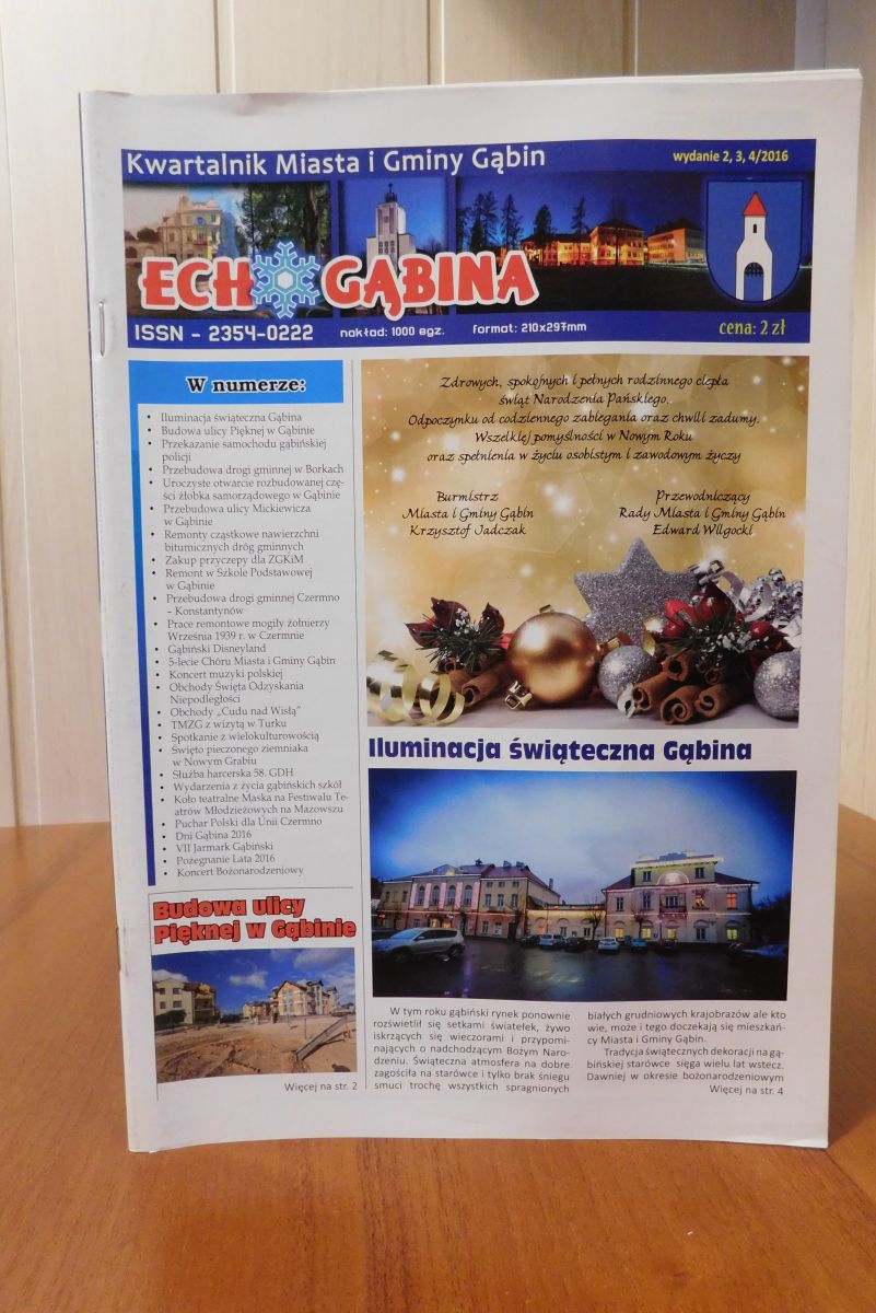 Zapraszamy do zakupu kolejnego wydania kwartalnika gminy Gąbin „Echo Gąbina”. Egzemplarz można nabyć w bibliotece za 2 zł.