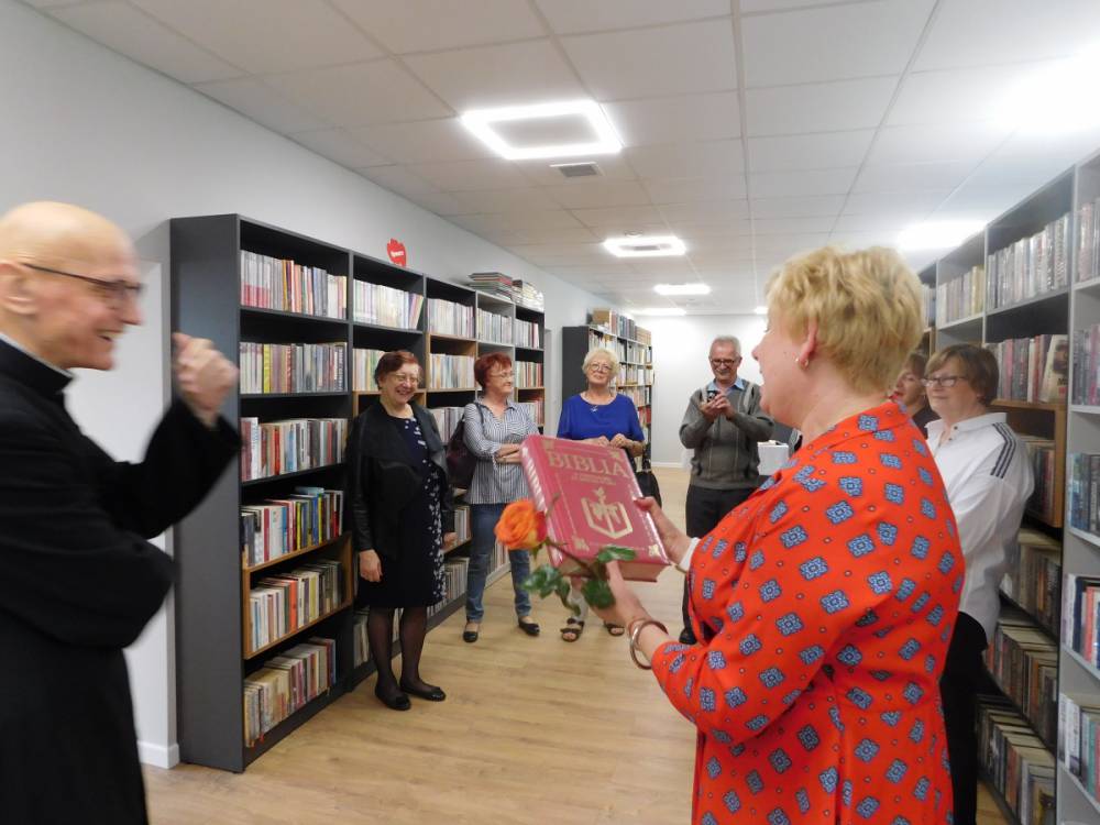 Ks. Proboszcz Andrzej Świderski, który poświęcił lokal Biblioteki