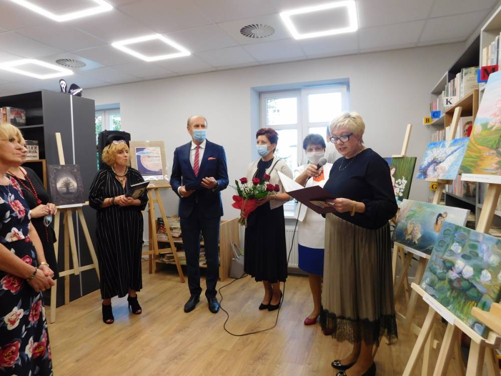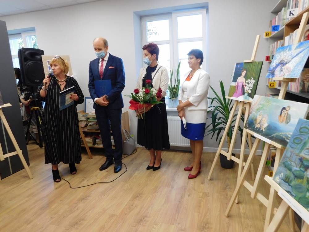 Na koniec dr hab. Jarosław Domagała, dyrektor Biblioteki oraz Szkoły Muzycznej I stopnia im. Stanisława Moniuszki w Gąbinie, życzył artystkom wytrwałości w tworzeniu, a Pani Iwonie Motylewskiej-Białek w prowadzeniu grupy. Podkreślił, że każde tworzenie jest czymś pięknym, ponieważ świadczy o potrzebie człowieka. O jego duchowych potrzebach