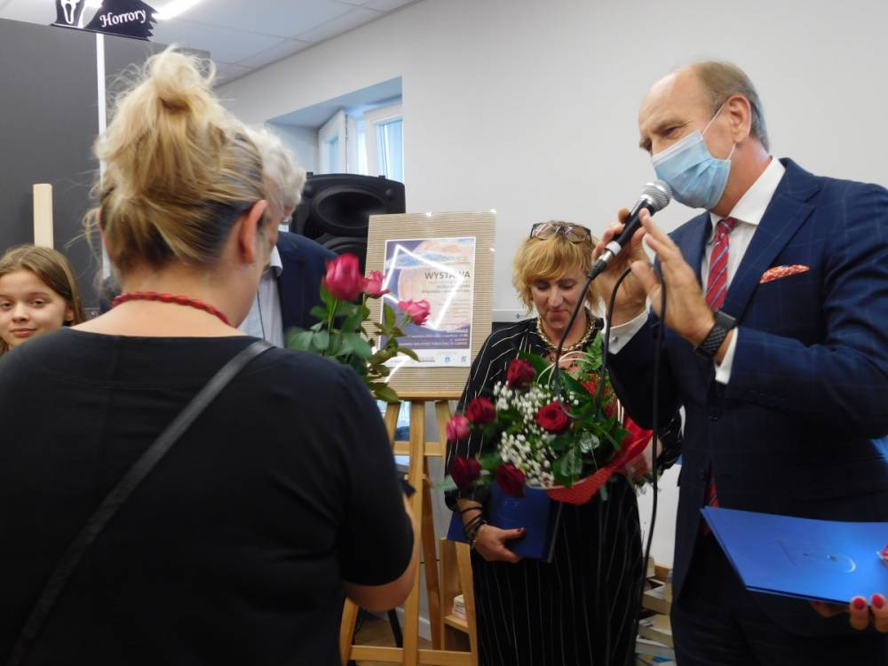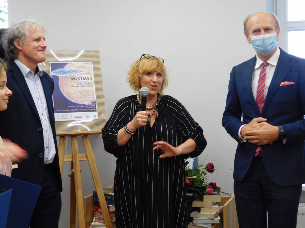 „To dzięki artystom możemy przeżyć wyjątkowe chwile wzruszenia. Wyjątkowe chwile, które nas inspirują do myślenia nad światem, nad człowiekiem.” – powiedział na wernisażu pt. „Szafirową nitkę wieczór plącze…” Burmistrz Miasta i Gminy Gąbin Krzysztof Jadczak.