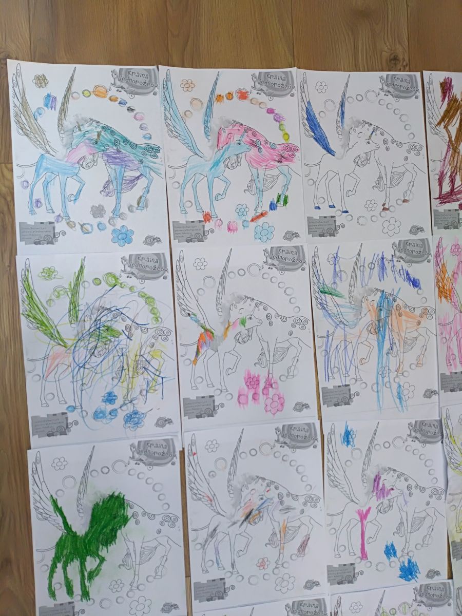 Grupa „Krasnali” kolorująca szablony jednorożców