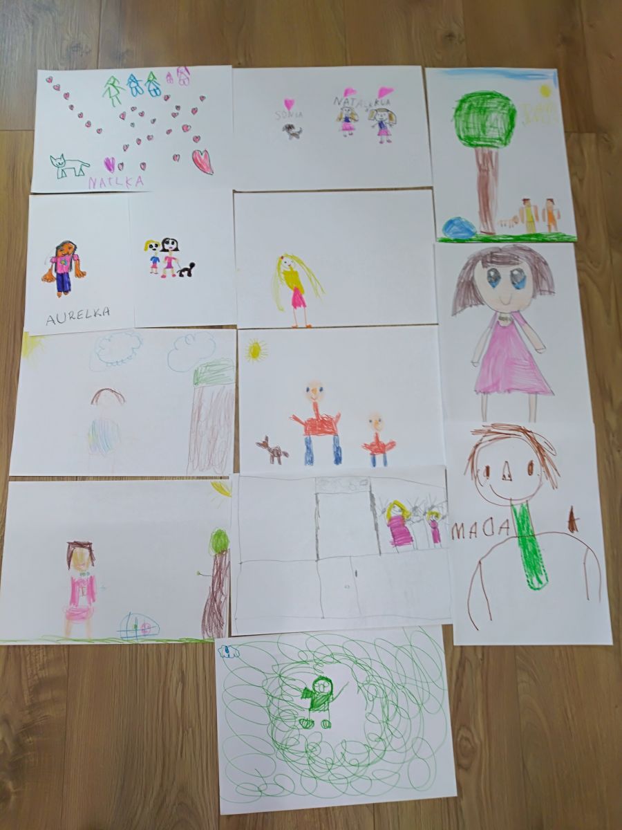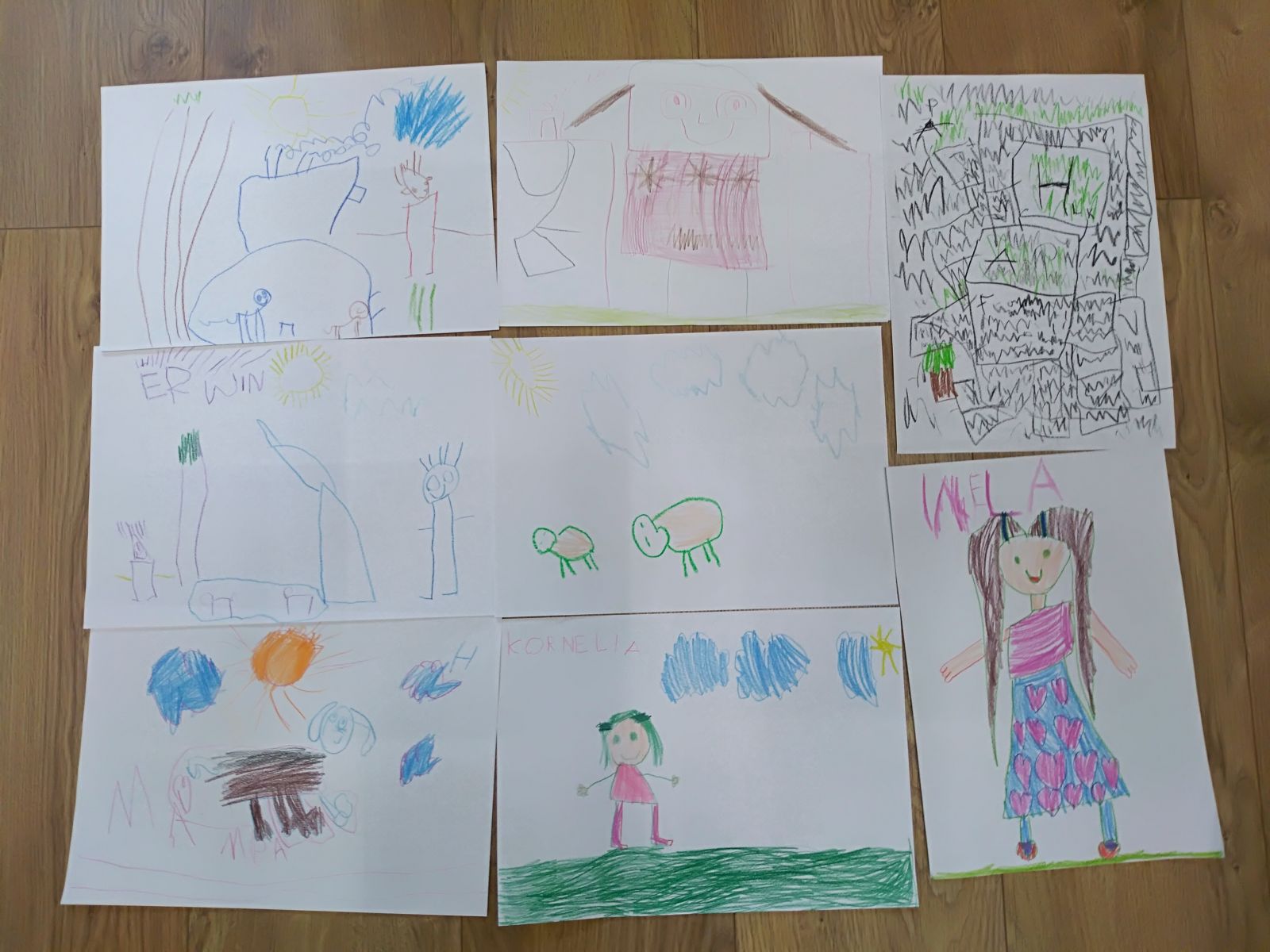 Grupa „Skrzatów” rysująca swoich przyjaciół