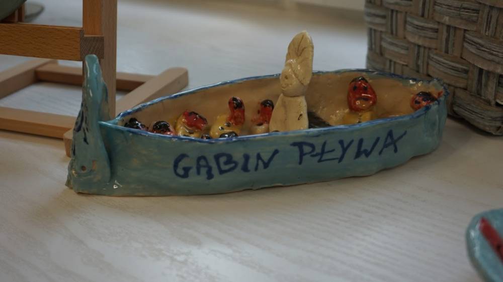 To właśnie tu powstały prezentowane prace, na warsztatach w ramach Projektu „ W  Gąbinie garnki lepią”