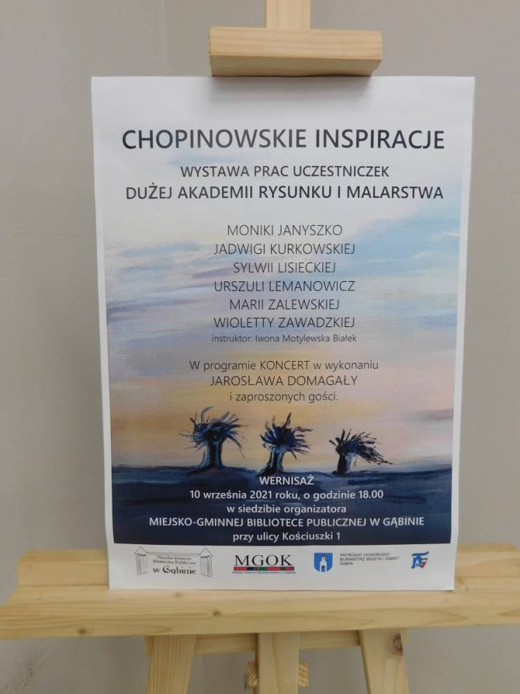 Galeria Wernisaż wystawy „Chopinowskie inspiracje” 14 września, 2021 Continue Reading Previous Previous post: Biblioteka nieczynna w poniedziałek Next Next post: KOMUNIKAT Dodaj komentarz Anuluj pisanie odpowiedziTwój adres e-mail nie zostanie opublikowany. Wymagane pola są oznaczone *Komentarz * Nazwa * Adres e-mail * Witryna internetowa Zapamiętaj moje dane w tej przeglądarce podczas pisania kolejnych komentarzy.