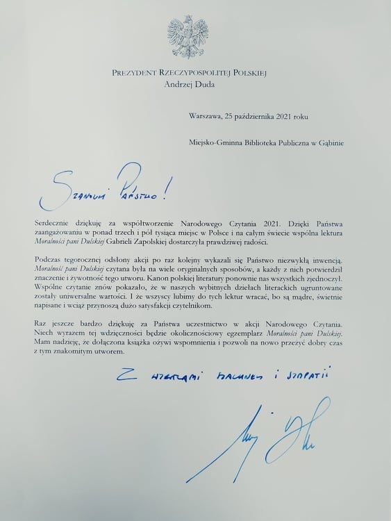 jaki otrzymaliśmy od Prezydenta Rzeczypospolitej Polskiej