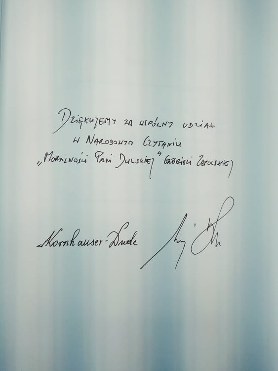 Prezentujemy również egzemplarz książki, którą otrzymaliśmy podpisany przez Panią Agatę Kornhauser-Dudę I damę RP.