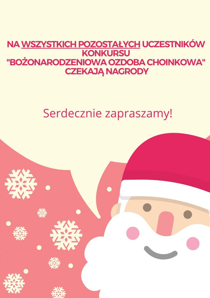 Zapraszamy WSZYSTKICH uczestników konkursu „Bożonarodzeniowa ozdoba choinkowa” do biblioteki po nagrody oraz dyplomy. Czekamy na Was!
