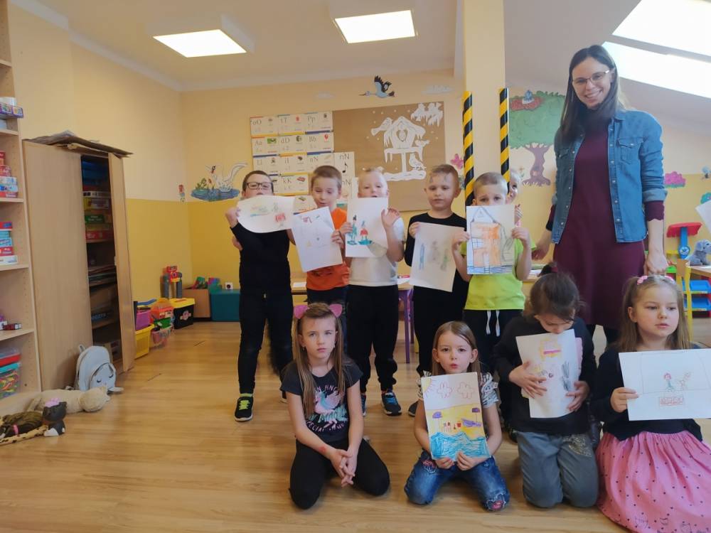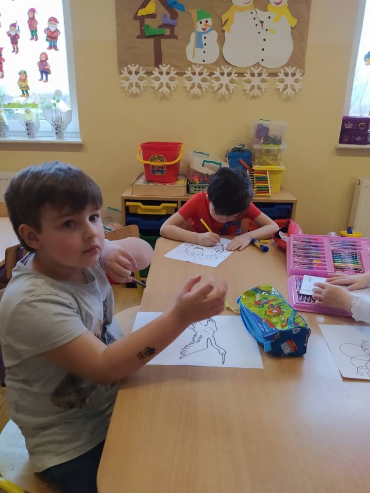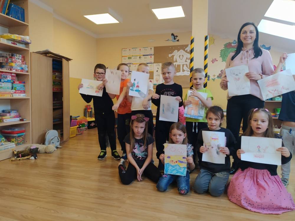 Tym razem „Sowy” narysowały dla nas piękne prace, na których przedstawiły jak spędziły ferie zimowe. Każde dziecko opowiedziało nam swoje wspomnienia z tego czasu.