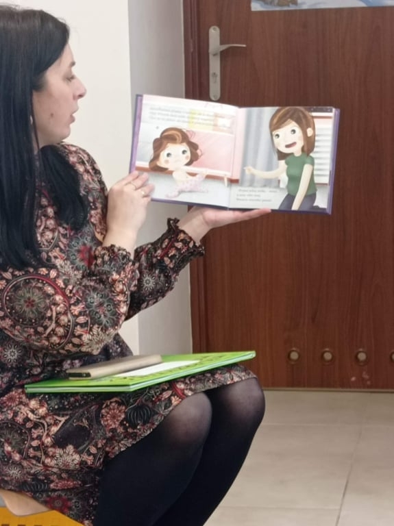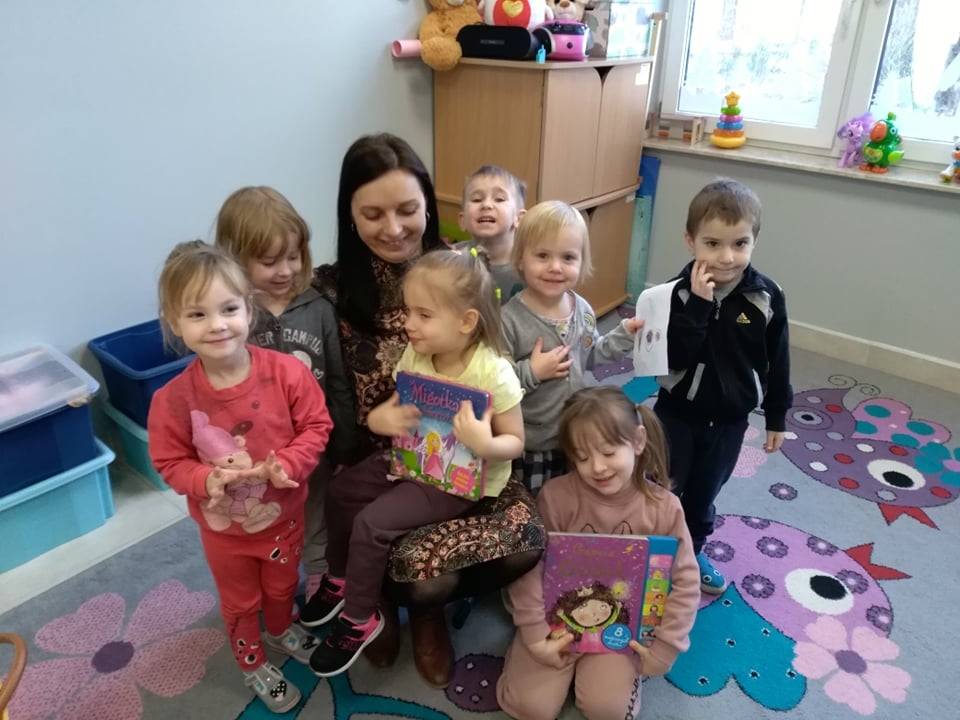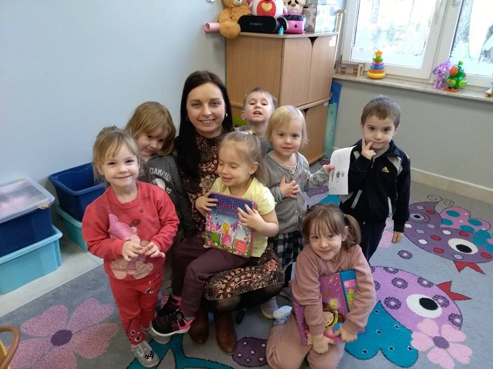 Najmłodszej z nich –„Pszczółkom” przeczytałam bajeczkę pt. „Migotka i jednorożec”, oraz książeczkę dźwiękową pt. „Gapcia Gosia”. Dzieci z radością pomagały naciskać kwadraciki, z których wydobywała się melodia.