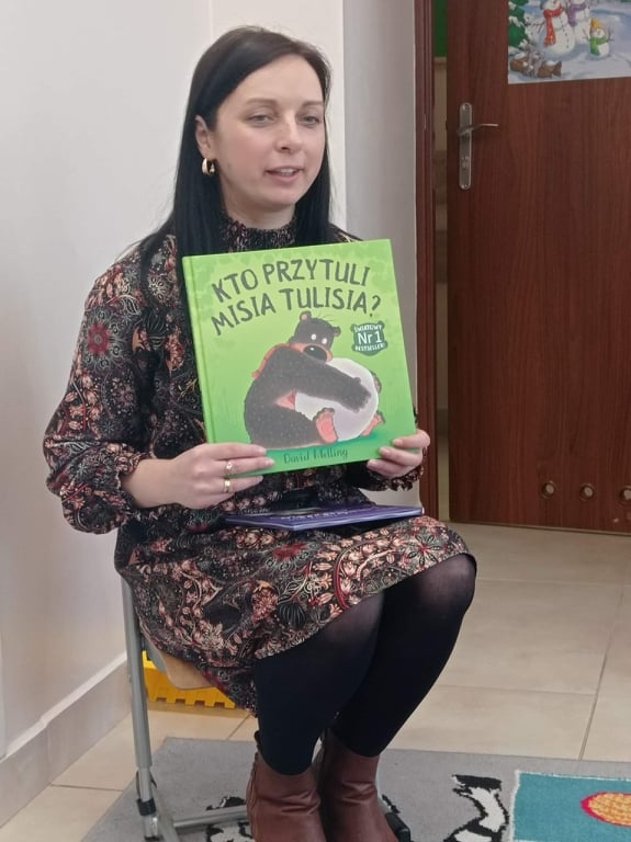 „Motylkom” opowiedziałam bajkę D. Mellinga pt. „Kto przytuli Misia Tulisia?” oraz przeczytałam książeczkę B. Supeł pt. „Jadzia Pętelka idzie spać”.