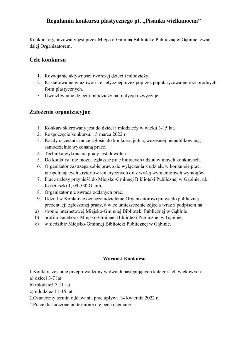 Zapraszamy do udziału w konkursie pt. „Pisanka wielkanocna” na najładniejszą pisankę. Stwórzcie ją samodzielnie z dowolnego materiału ( z papieru, bibuły, modeliny itd.) i przynieście do Biblioteki.