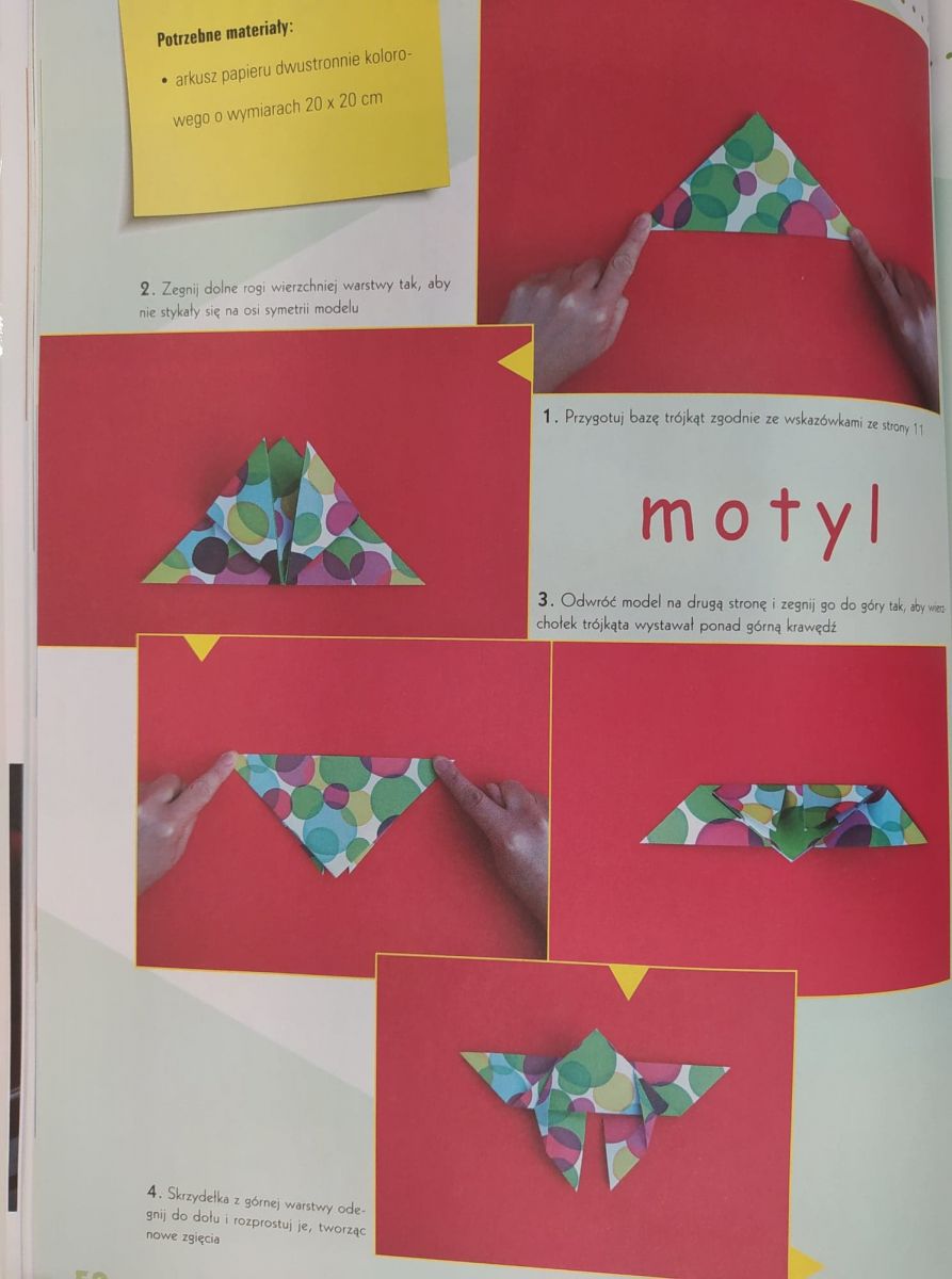 Dodatkowo chcielibyśmy Wam pokazać jak zrobić wiosennego motyla z origami. Poniżej znajduję się instrukcja jak go wykonać.