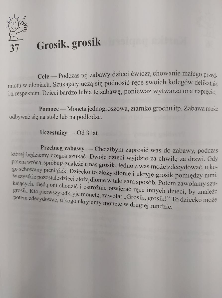 Gra pt. „Grosik, grosik”, którą prezentujemy jest bardzo lubiana przez dzieci, ponieważ ma w sobie element zaskoczenia.