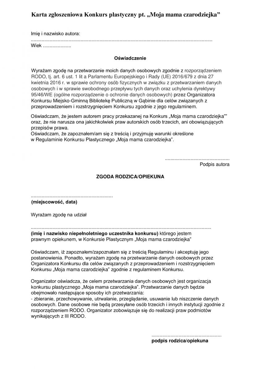 Koniecznie zapoznajcie się z regulaminem i wypełnijcie karty zgłoszeniowe.
