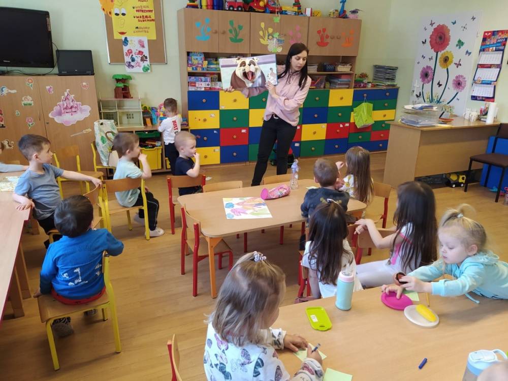 Dn. 28.04.2022 r. odbyło się kolejne „Spotkanie z bajką” z dziećmi z Przedszkola Samorządowego w Dobrzykowie, które prowadziły bibliotekarki Joanna Olejniczak i Karolina Kędzia.