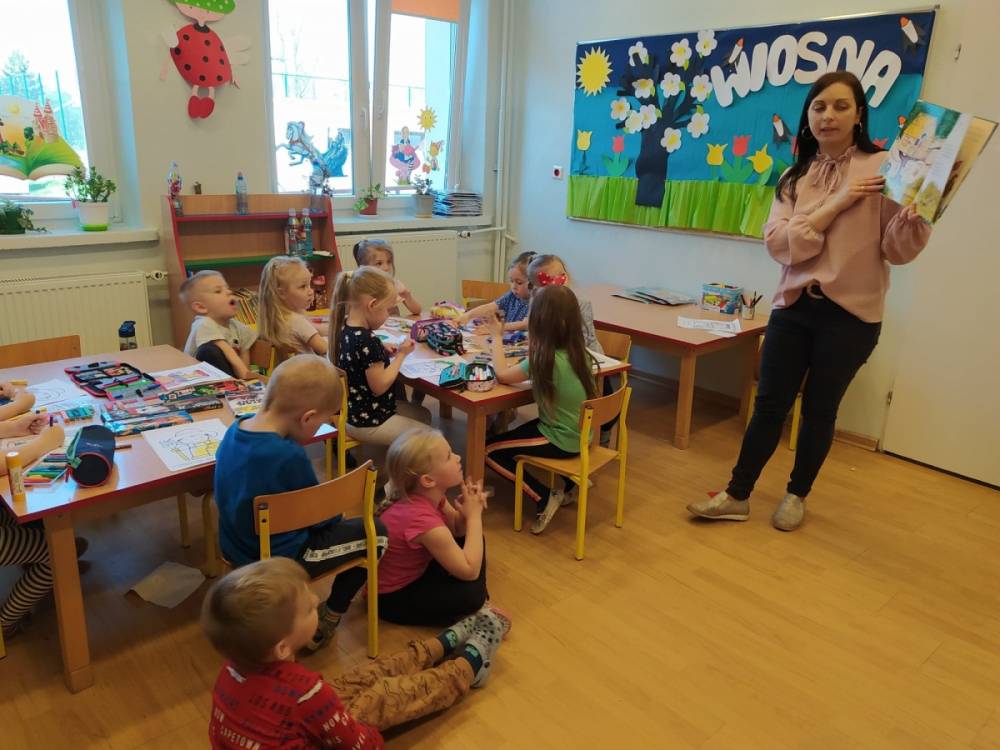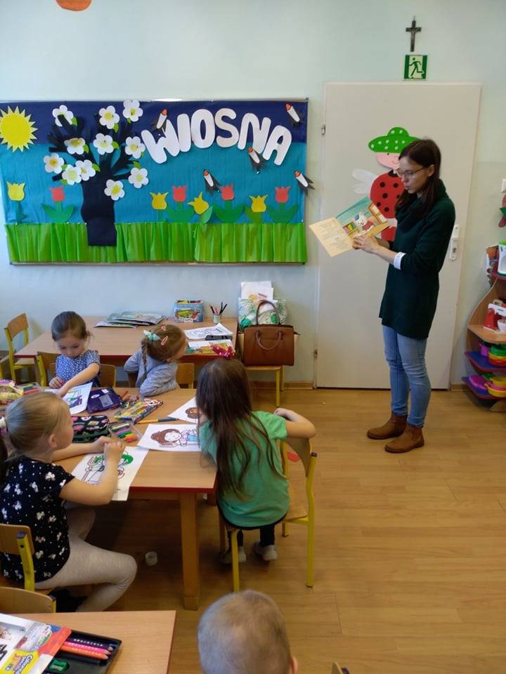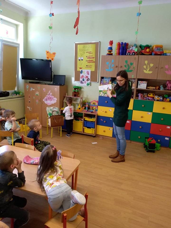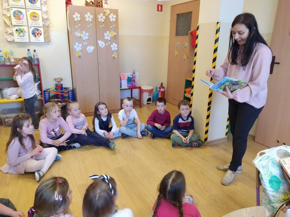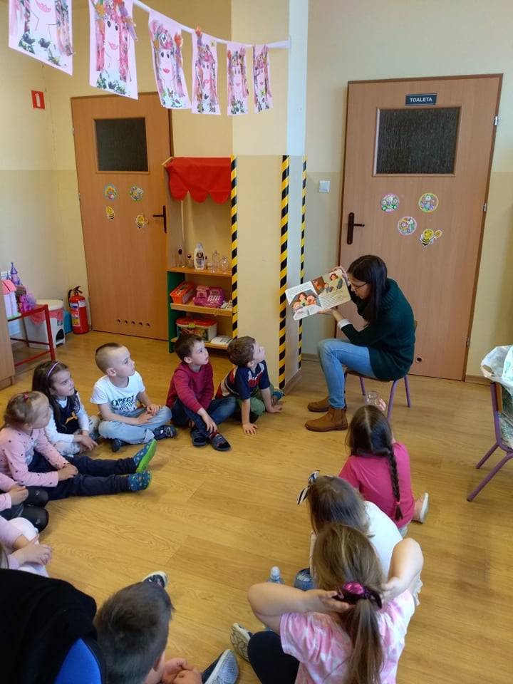 „Jagódkom” Pani Asia przeczytała bajkę pt. „Brzydkie kaczątko” z serii Bajki superdzieciaka, zaś bibliotekarka Karolina zaprezentowała dzieciom książeczkę M. Boćko-Mysiorskiej pt. „Tosia i Julek idą do przedszkola”.