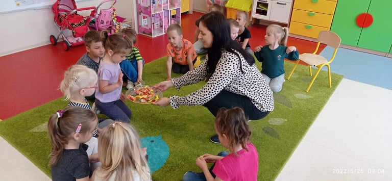 Tradycyjnie na koniec zajęć dzieci otrzymały słodką niespodziankę, która wywołuje dodatkowy uśmiech na Ich buziach.