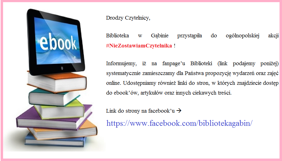 Link do strony biblioteki na Facebook’u: https://www.facebook.com/bibliotekagabin/