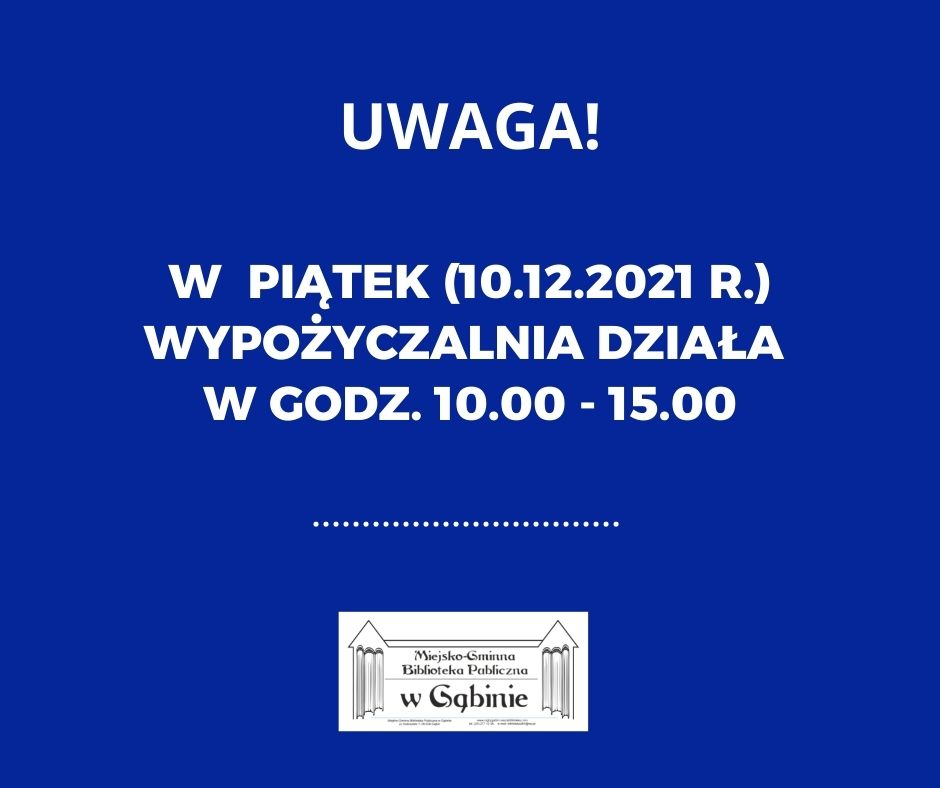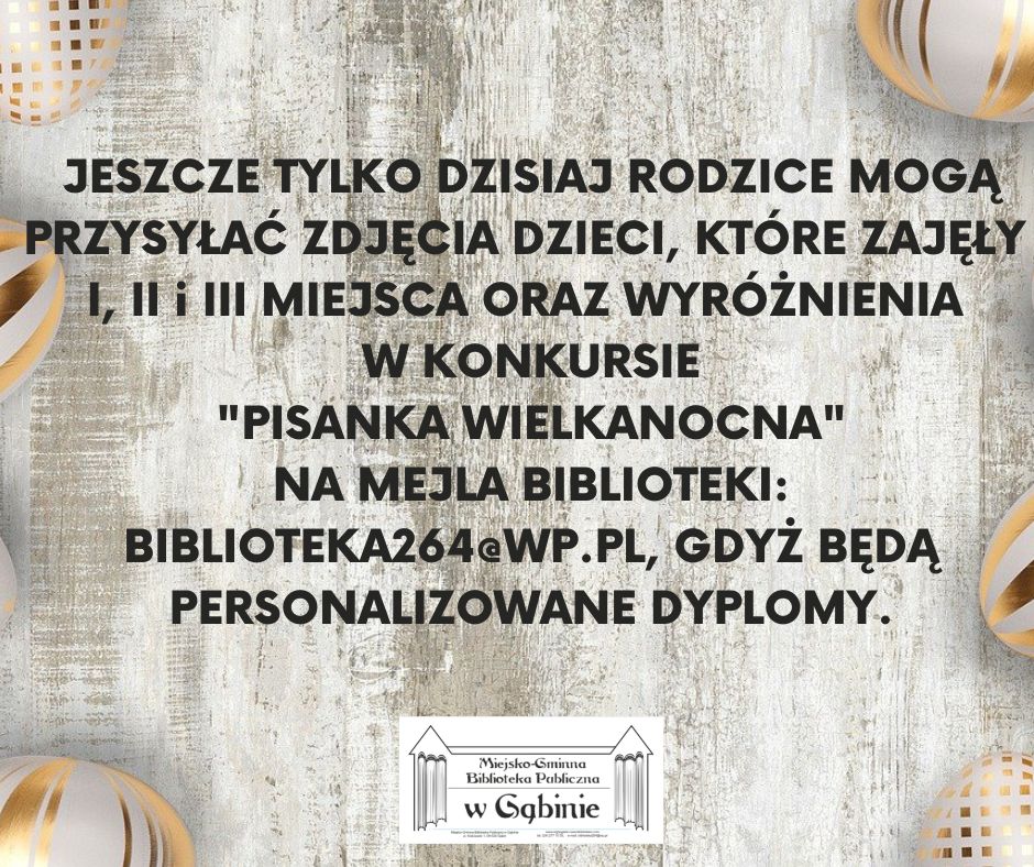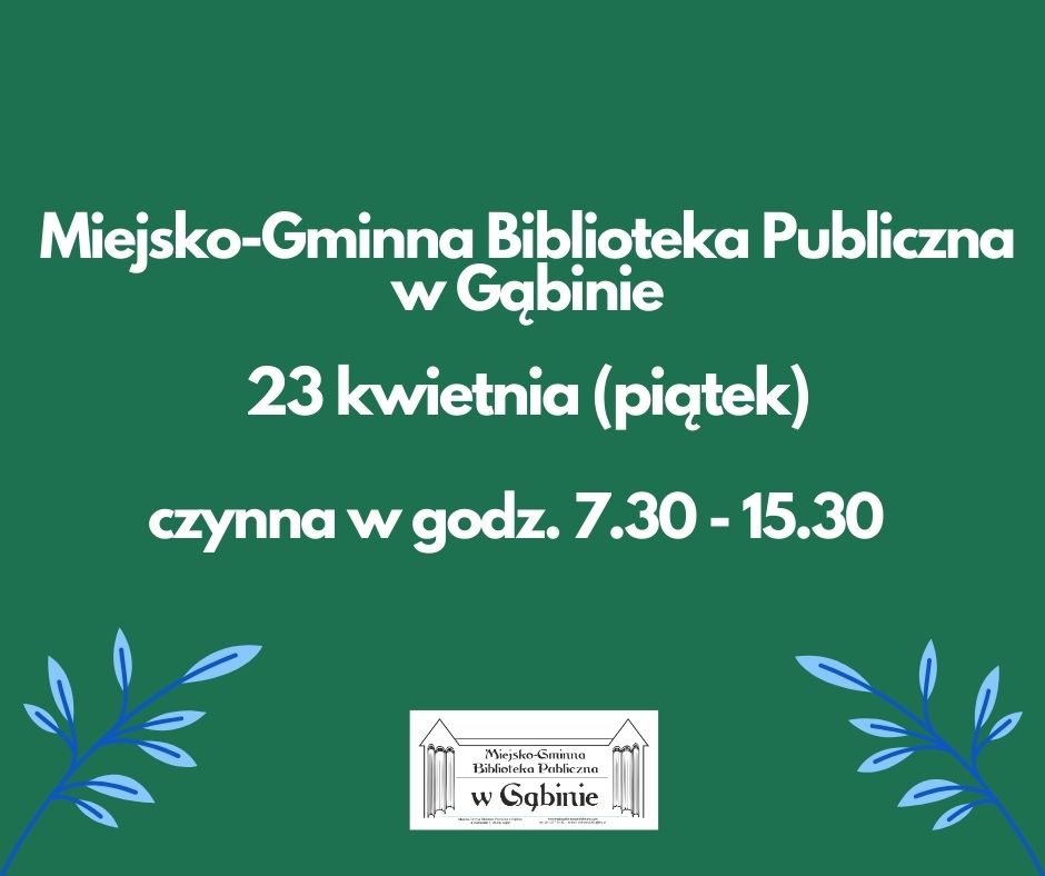 ZAPRASZAMY 23 KWIETNIA, W SOBOTĘ DO MGBP W GĄBINIE!