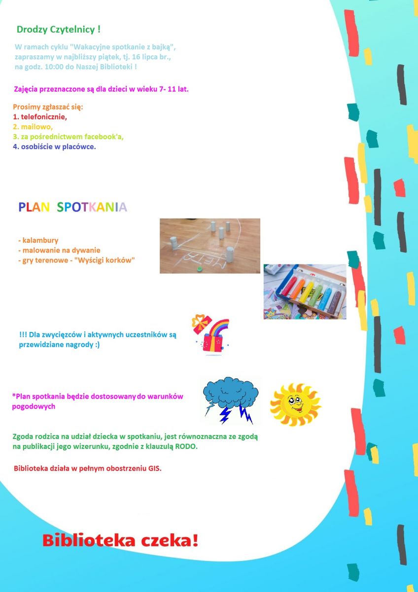 Informujemy, że obowiązuje podpisanie zgody na udział i publikację wizerunku dziecka w bibliotece.