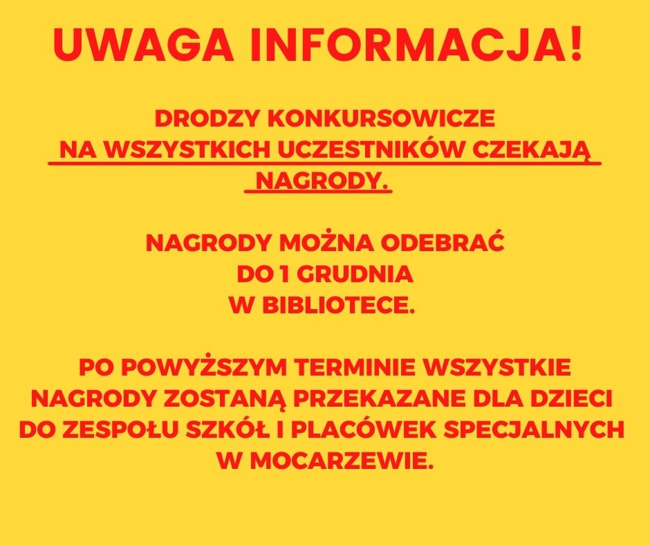 NAGRODY MOŻNA ODBIERAC OD 8.12.2021 R. DO 23.12.2021 R.