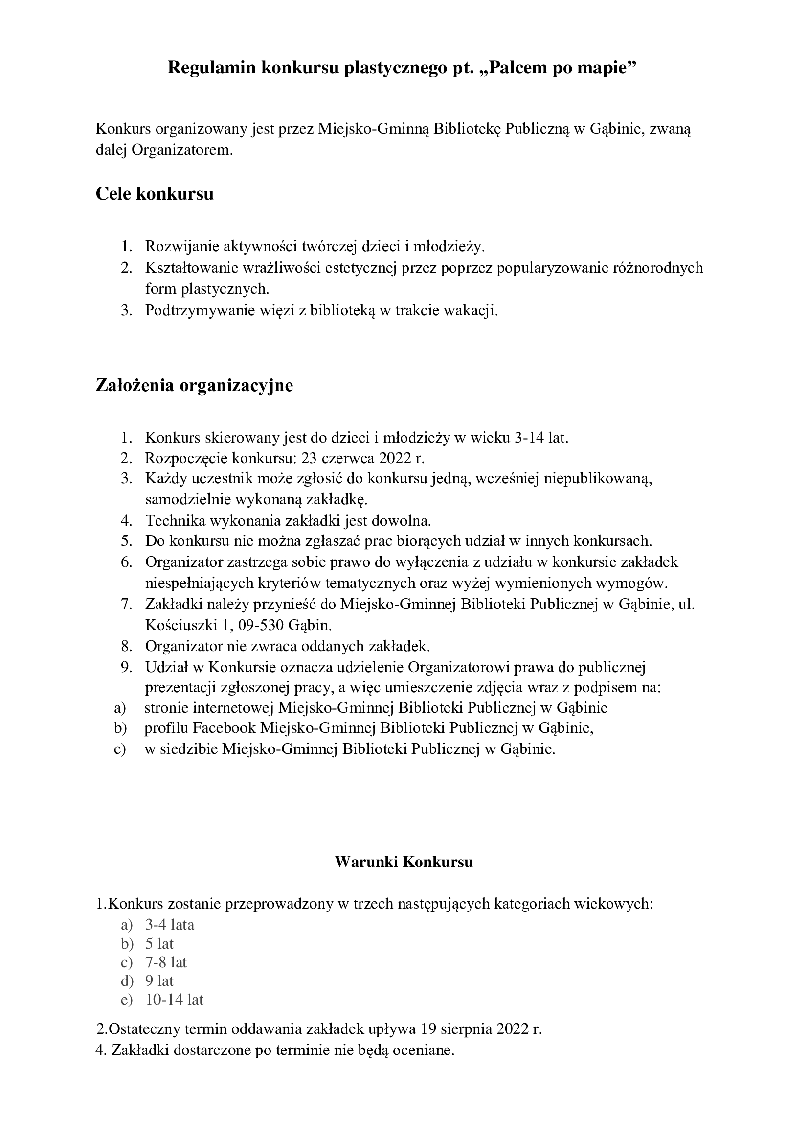 Konkurs przeznaczony jest dla dzieci i młodzieży do 14 roku życia.