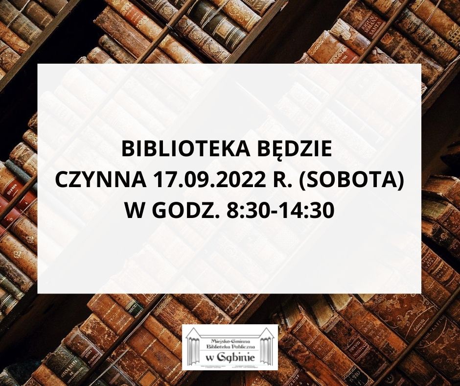 Ogłoszenia UWAGA! BIBLIOTEKA OTWARTA W DRUGĄ I TRZECIĄ SOBOTĘ WRZEŚNIA 31 sierpnia, 2022 Continue Reading Previous Previous post: ,,PIKNIK Z KSIĄŻKĄ” NA ZAKOŃCZENIE WAKACJI W MGBP W GĄBINIE Next Next post: Konkurs ,,Jestem bezpieczny!” Dodaj komentarz Anuluj pisanie odpowiedziTwój adres e-mail nie zostanie opublikowany. Wymagane pola są oznaczone *Komentarz * Nazwa * Adres e-mail * Witryna internetowa Zapamiętaj moje dane w tej przeglądarce podczas pisania kolejnych komentarzy.