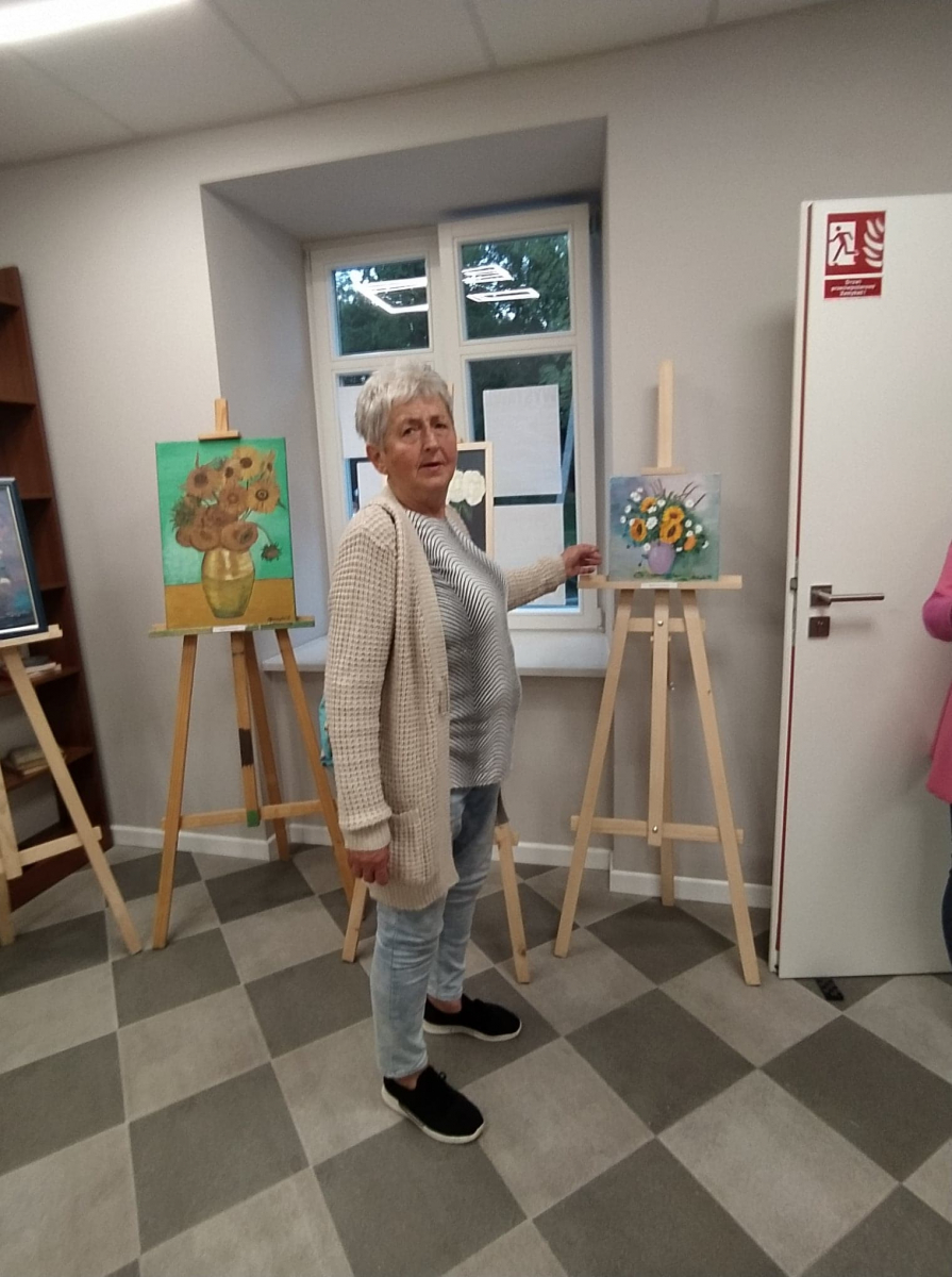 W ubiegły piątek, na kolejnym spotkaniu z cyklu ,,Sztuka w bibliotece” swoje prace zaprezentowały uczestniczki Dużej Akademii Rysunku i Malarstwa. Na wystawie można było zobaczyć martwą naturę oraz obrazy inspirowane malarstwem Paula Cézanne’a.
