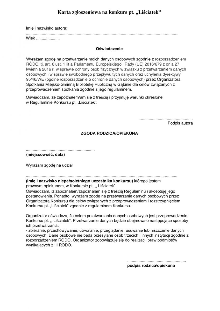 Koniecznie zapoznajcie się z regulaminem i wypełnijcie karty zgłoszeniowe.