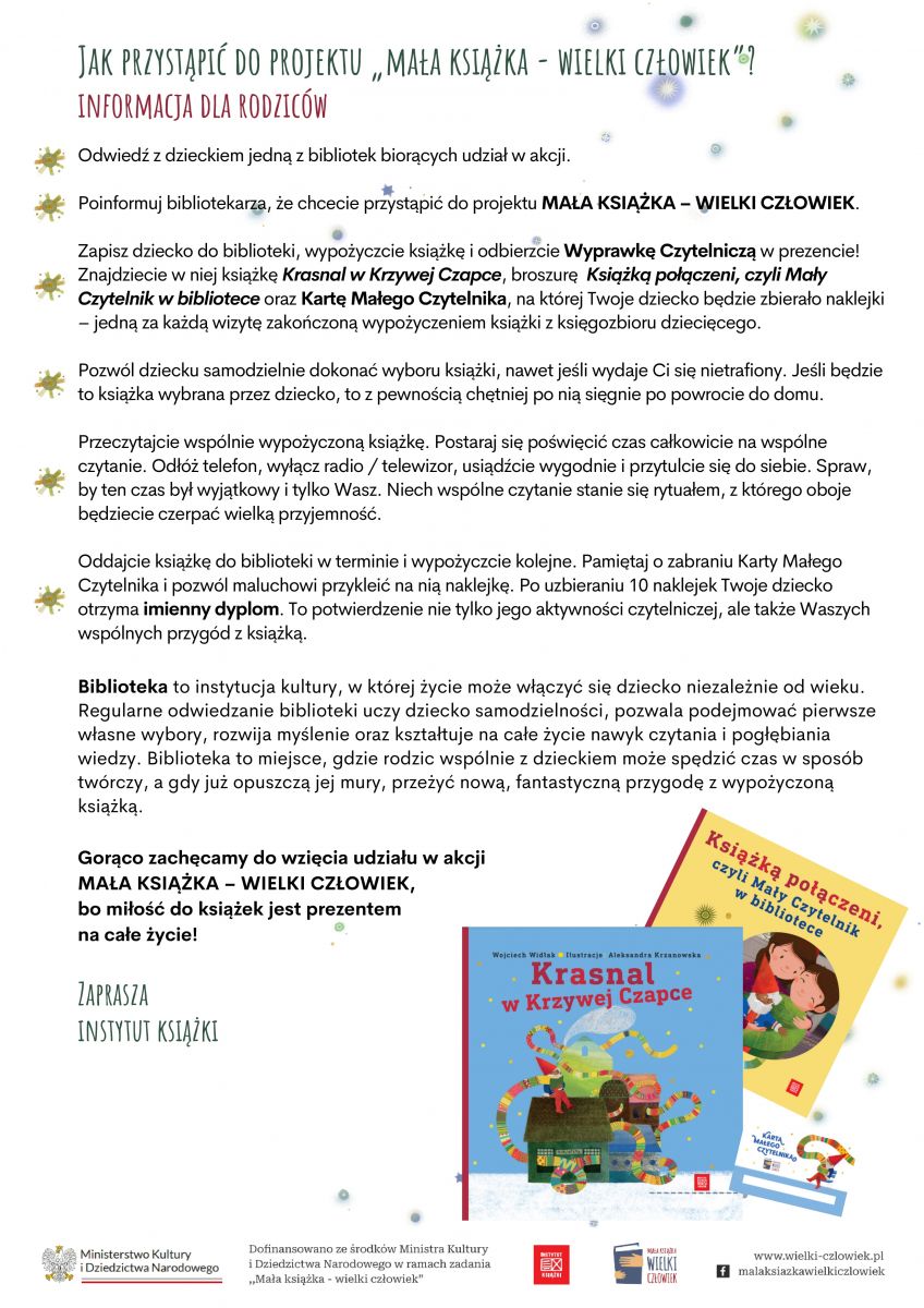 Serdecznie zapraszamy do udziału w akcji Mała książka-wielki człowiek. Projekt ogólnopolskiej fundacji, w który włącza się MGBP w Gąbinie skierowany jest do dzieci w wieku przedszkolnym. Każdy Maluch, który odwiedzi bibliotekę otrzyma w prezencie Wyjątkową Wyprawkę.