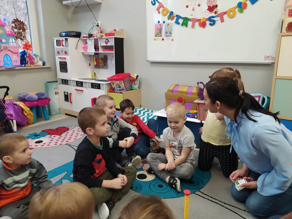 W grupie „Biedronki” Pani Asia zaprezentowała dzieciom grę „5 sekund”, wyjaśniła zasady, po czym wszyscy od razu chcieli już ją rozpocząć. Po dwóch rundach każdy uczestnik odpowiadał na pytania, trudności nie było żadnych. Znalazły się w grupie osoby, które chętnie chciały pomagać kolegom i koleżankom podczas zadawanych pytań. Bardzo miło upłyną nam czas a moc otrzymanych uścisków świadczyła chyba o tym, że się podobało.