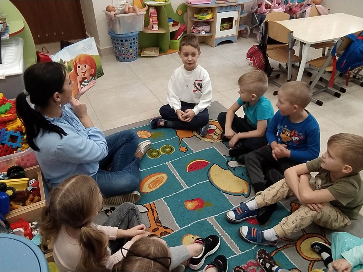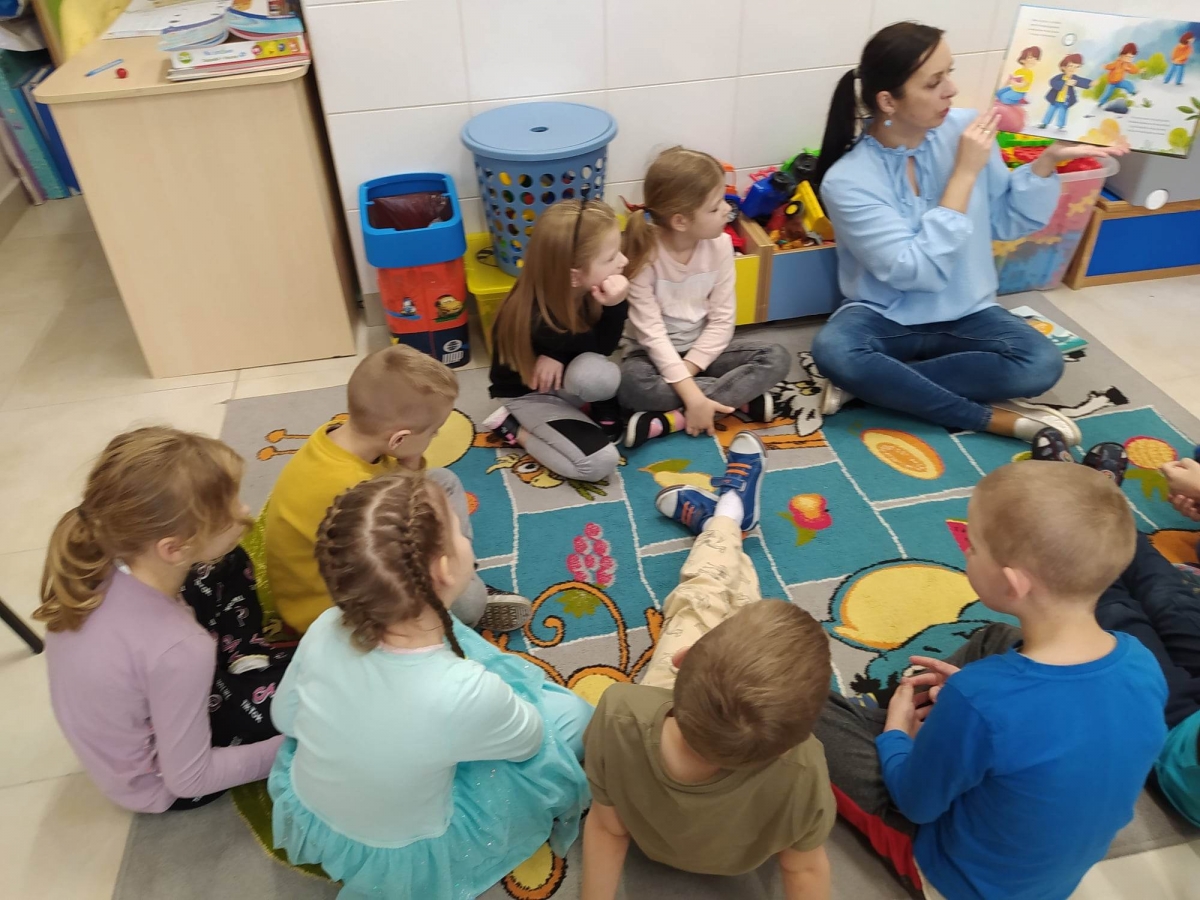 Najstarsza grupa „Motyle” wysłuchała książeczki M. Strzałkowskiej pt. „ Zmysły”, z której dowiedziała się kilku ciekawostek np. kotom obcy jest smak słodki, motyle narząd słuchu mają pod skrzydłami, pies nie rozpoznaje koloru czerwonego i zielonego itp. Dzieci chętnie uczestniczyły w dyskusji, zdawały wiele pytań.