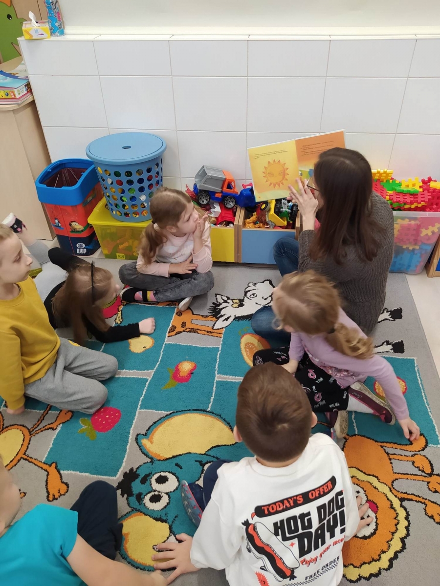 Pani Karolina dodatkowo przeczytała bajkę pt. „Dzień, w którym Heniś poznał…koguta” z serii Nowa kolekcja bajek.