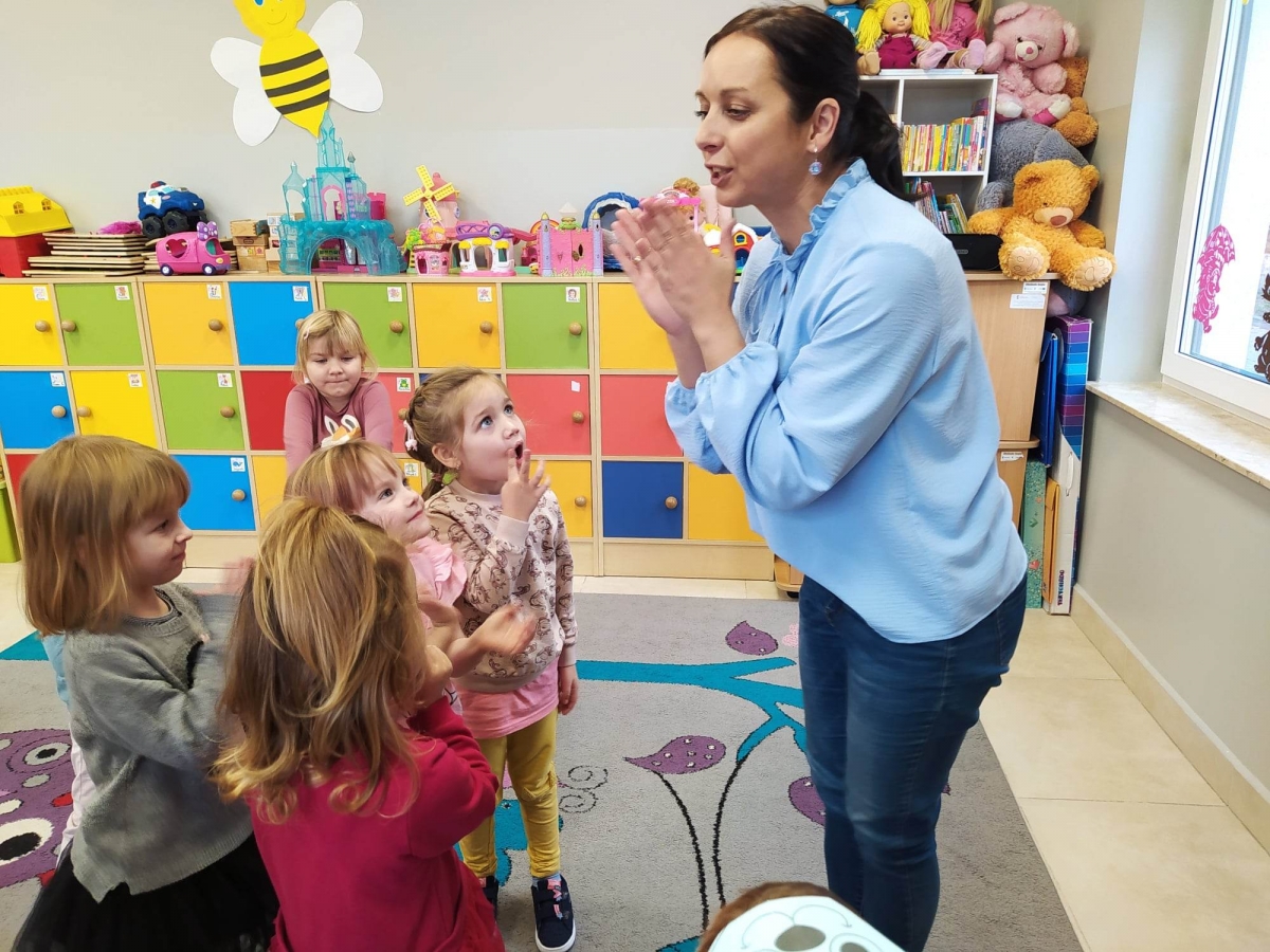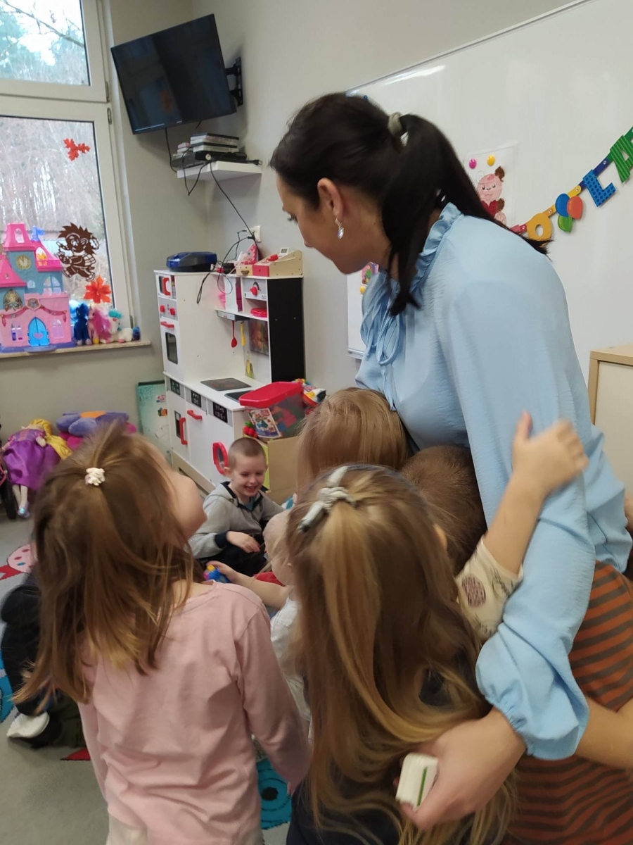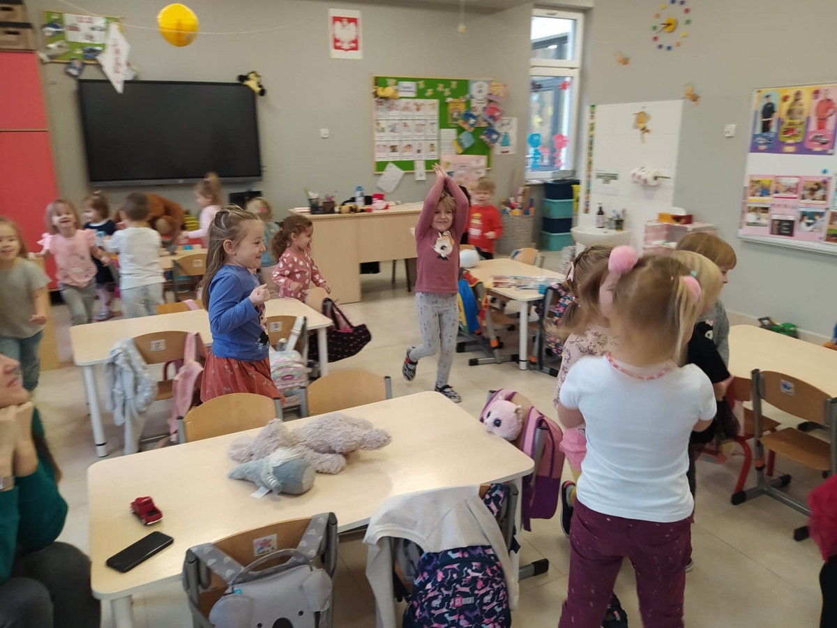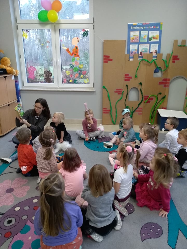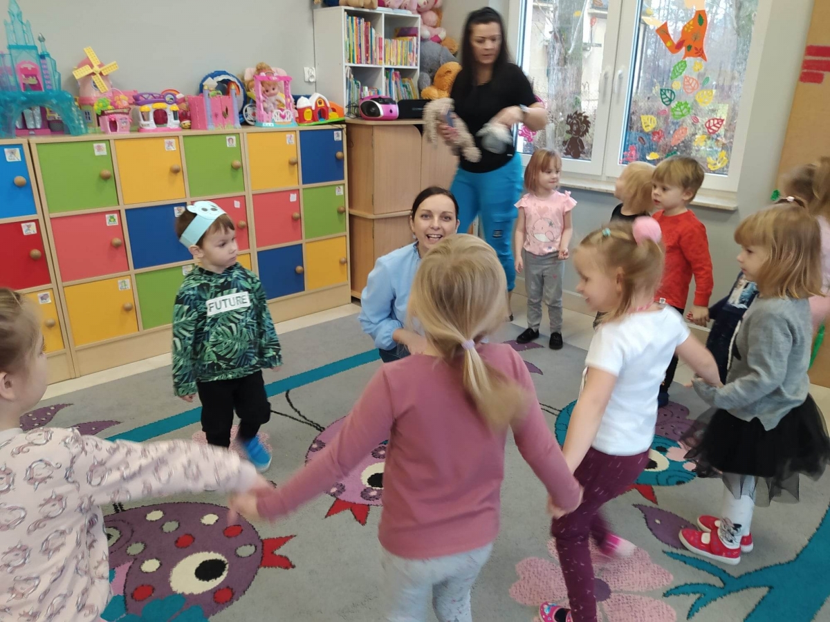 Poniedziałkowe spotkanie z dziećmi z Oddziału i Punktu Przedszkolnego w Nowym Grabiu tym razem upłynęło podczas wspólnych zabaw, gier oraz czytanych bajeczek.