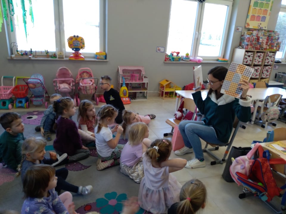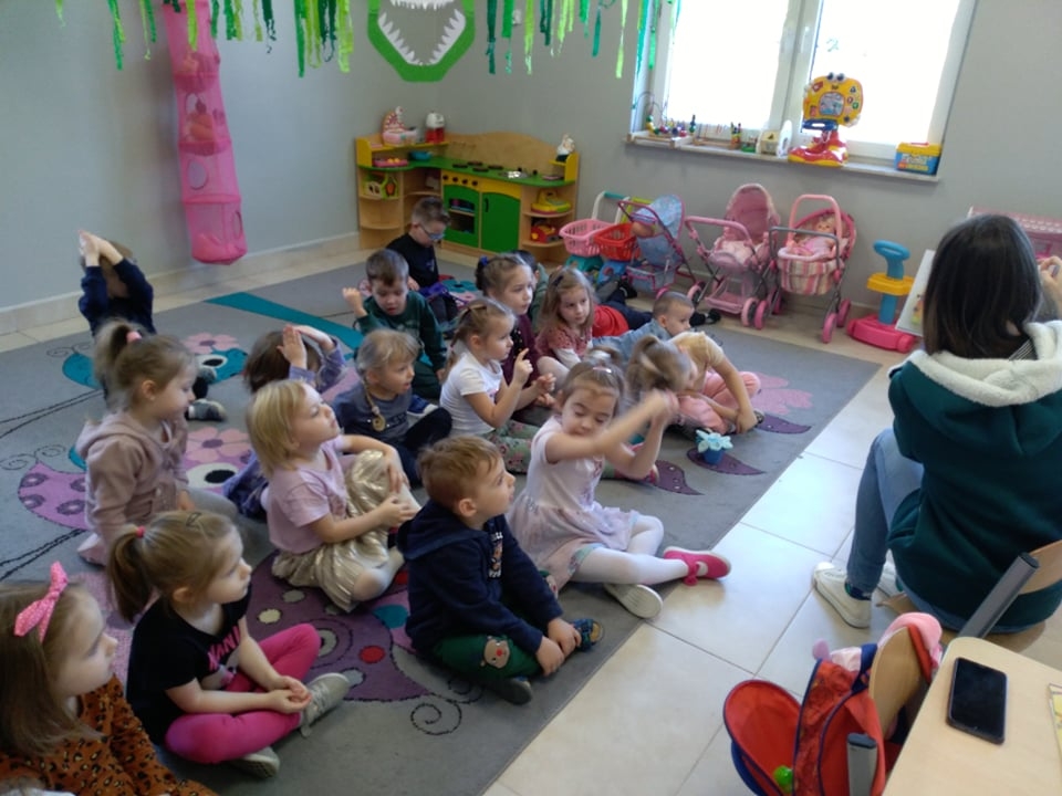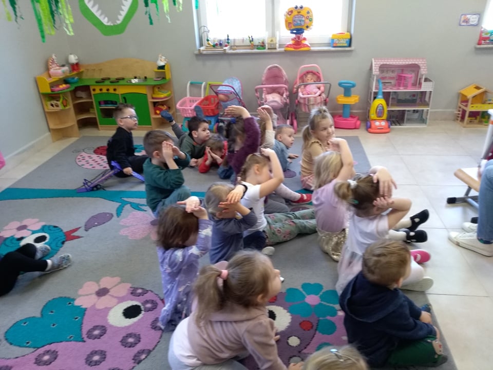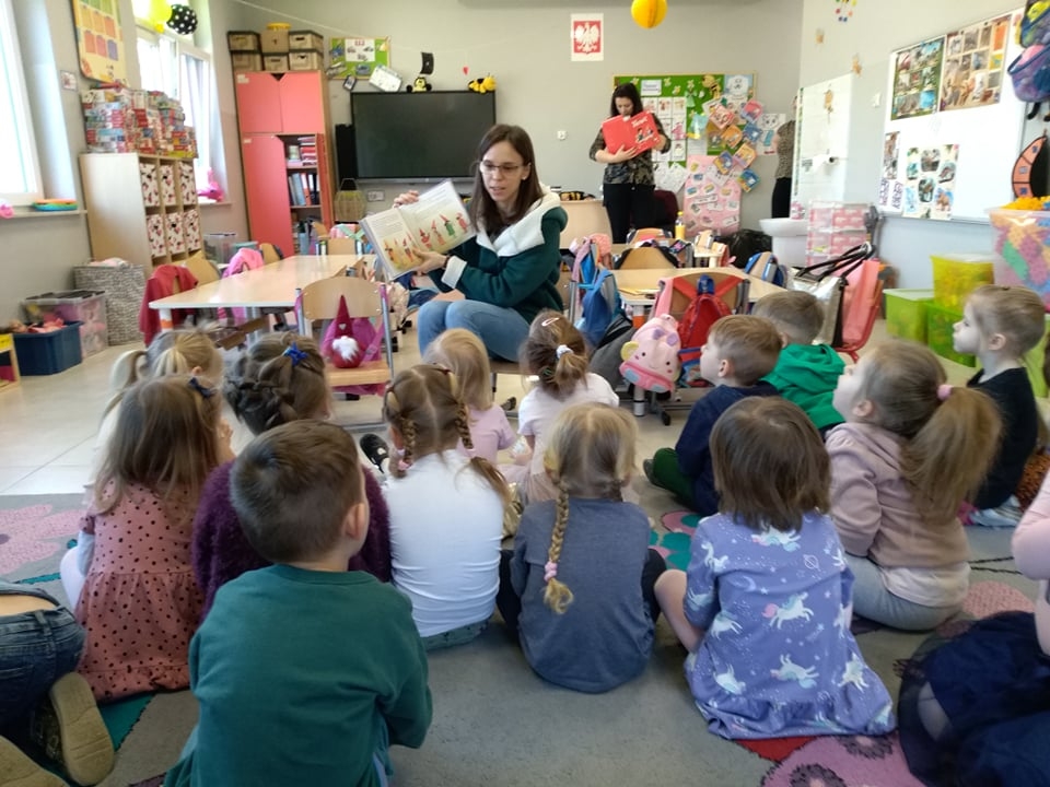 ,,Na Wojtusia z popielnika iskiereczka mruga. Chodź opowiem ci bajeczkę (…)” – znana kołysanka wybrzmiała na koniec zajęć. Przez wspólnie spędzony czas maluchy ,,napisały” kolejną już stronę przedszkolnych spotkań z książką.