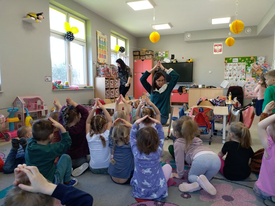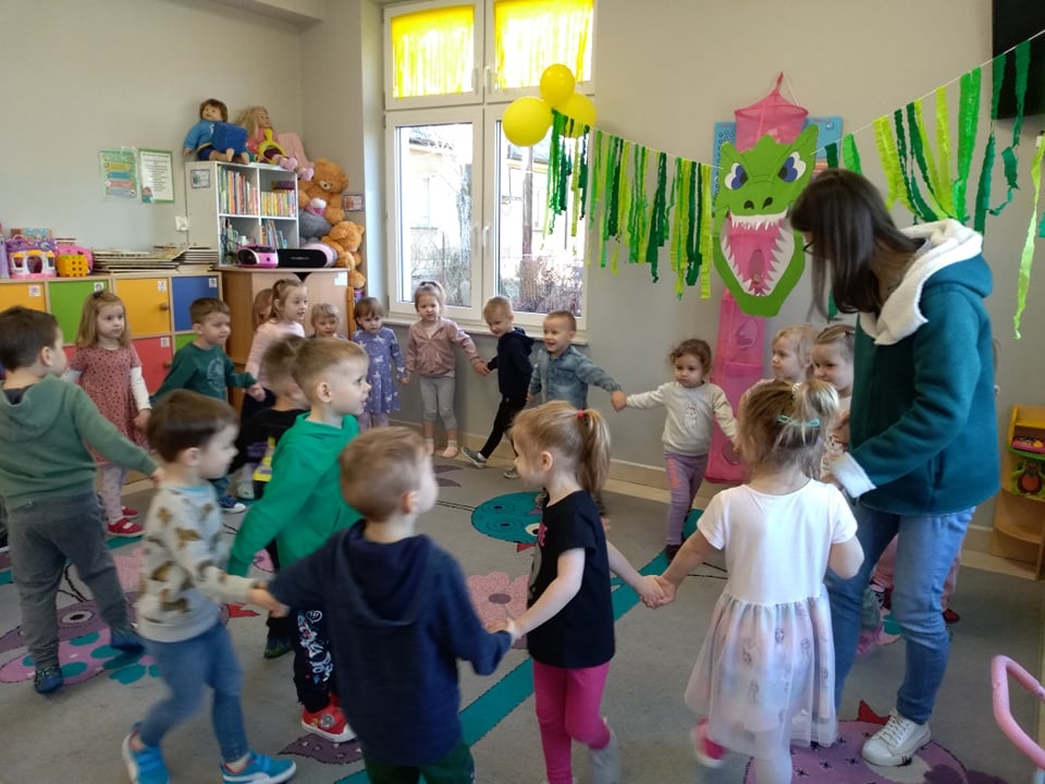 Dzień Opowiadania Bajek był tematem ostatniego spotkania z grupą Pszczółek w Przedszkolu w Nowym Grabiu. Podczas niego dzieci miały wyjątkowego gościa – krasnala, który nawiązywał do czytanej opowieści.