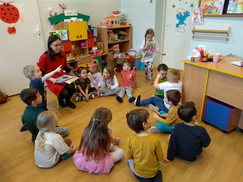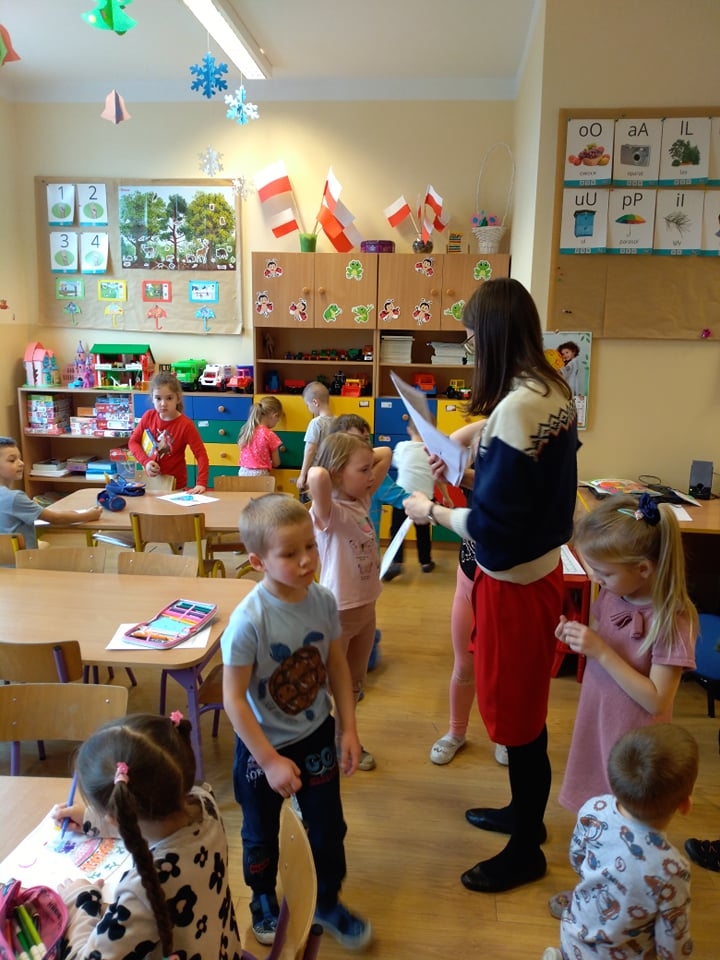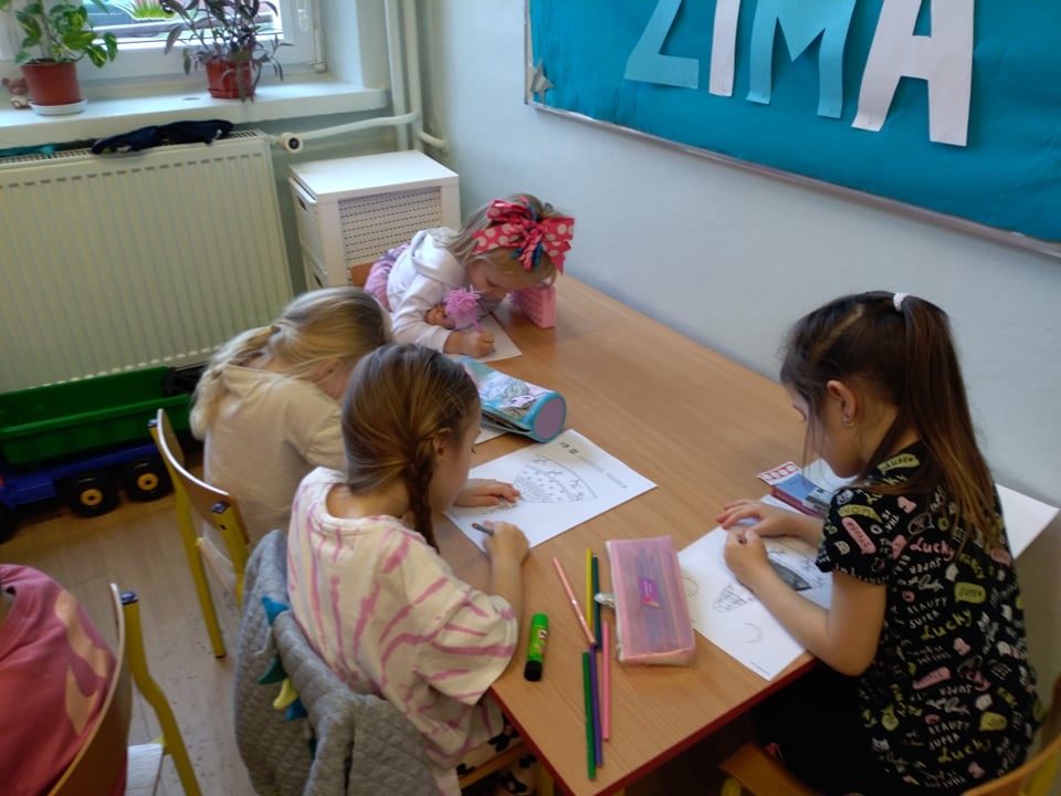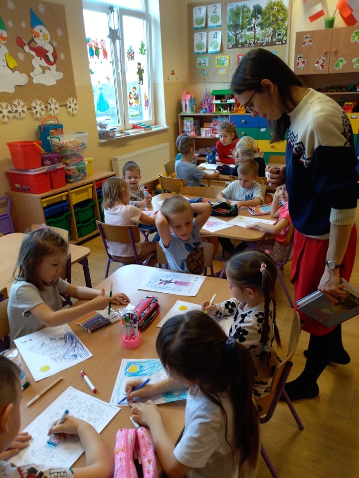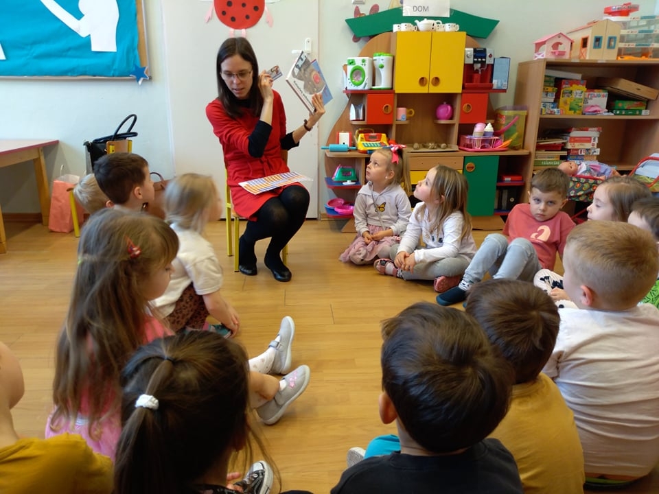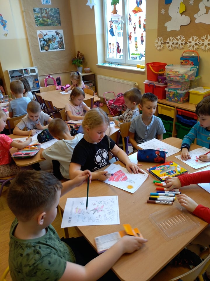 Postaci na wykonanych szablonach są pokazane z książkami, ponieważ zachęcają dzieci do ,, kontaktu z książką”.  Kolorowanki pochodzą z projektu ,,Mała książka wielki człowiek” Instytutu Książki z siedzibą w Krakowie. ,,Był sobie pewien krasnal. Miał piękną brodę i czerwone krasnalowi ubranko. Wiele umiał, a z czasem jeszcze więcej się nauczył i dowiedział, bo lubił czytać książki.” – brzmi fragment  książki czytanej podczas spotkania z dziećmi.