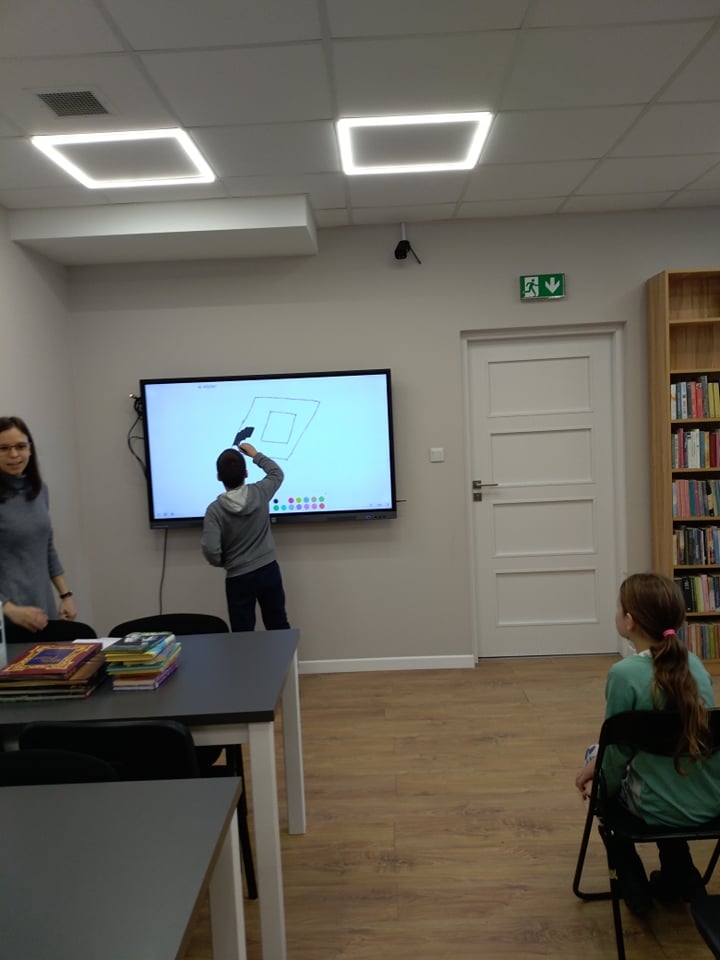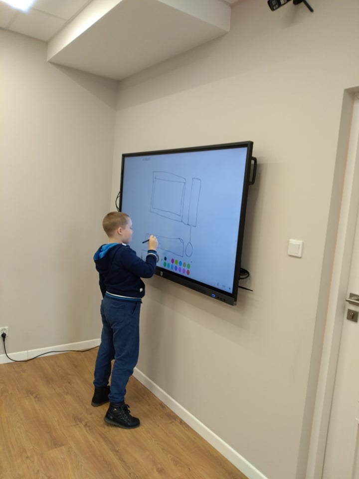 Doskonałym przykładem podsumowującym dzisiejszą lekcję była wspólna gra w kalambury przy tablicy multimedialnej. Hasłami do gry były przedmioty kojarzące się z internetem.
