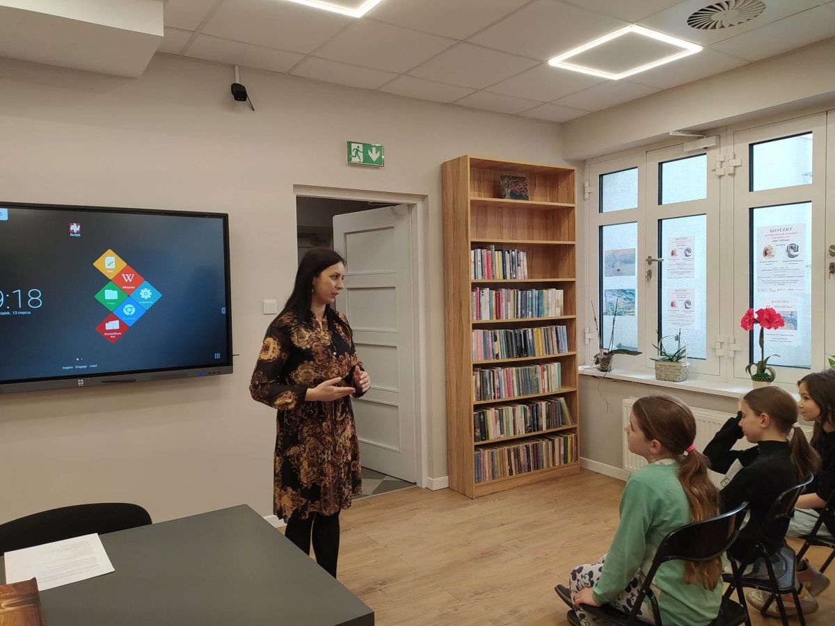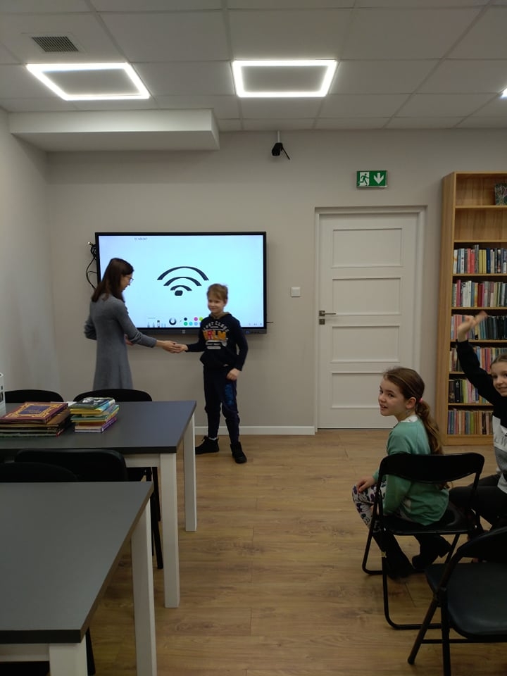 Dzisiejsza lekcja biblioteczna poświęcona była bezpieczeństwu w sieci, przeprowadziłam ją wraz z bibliotekarką Panią Karoliną Kędzią.