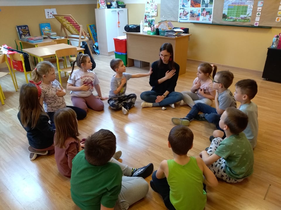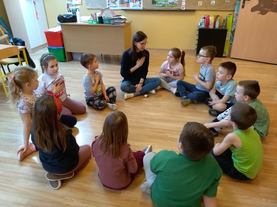 ,,W zabawie podobała mi się cisza.”- powiedziała dziewczynka, podczas Pogadanki 16 marca w Przedszkolu Samorządowym w Dobrzykowie. Większość dzieci z grupy przyznało jej rację i dodało, że nie lubią gdy rzeczy dzieją się w hałasie.
