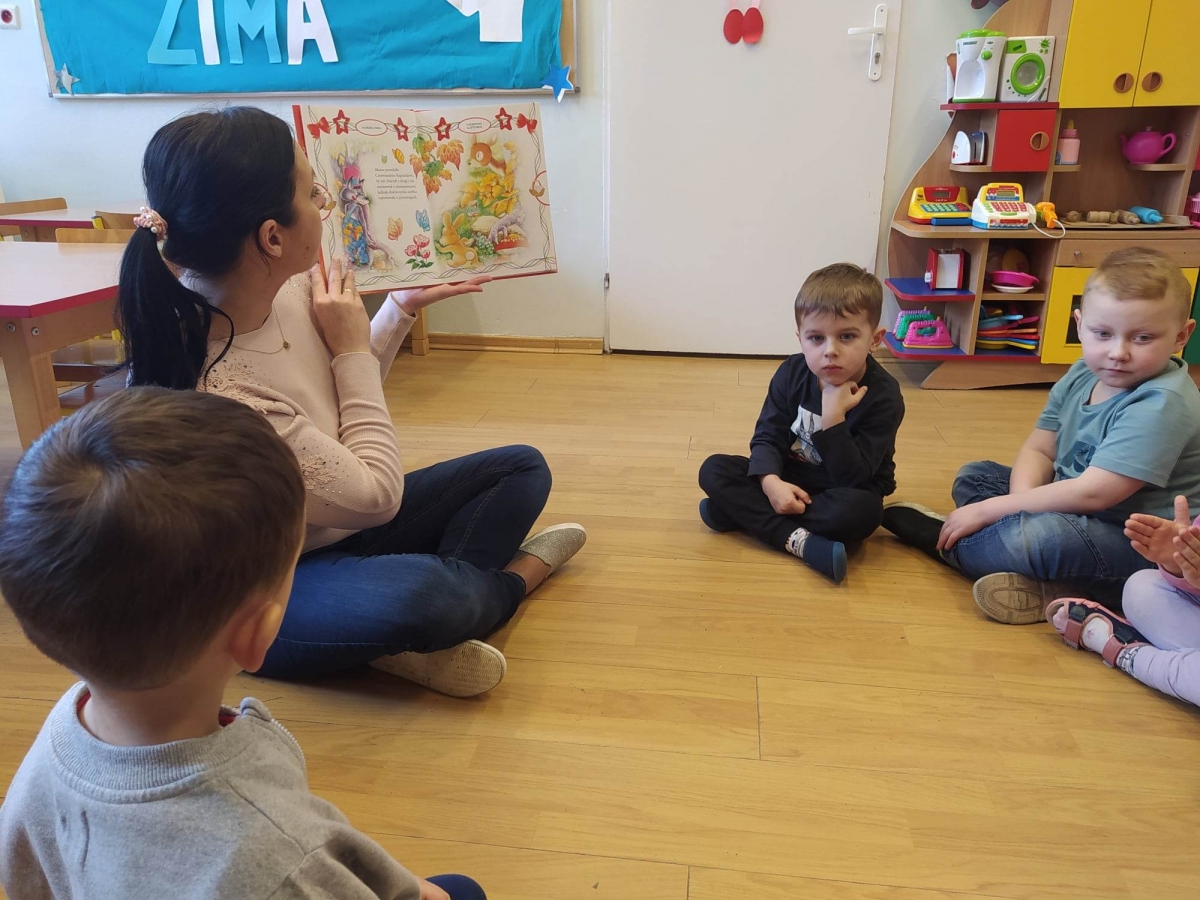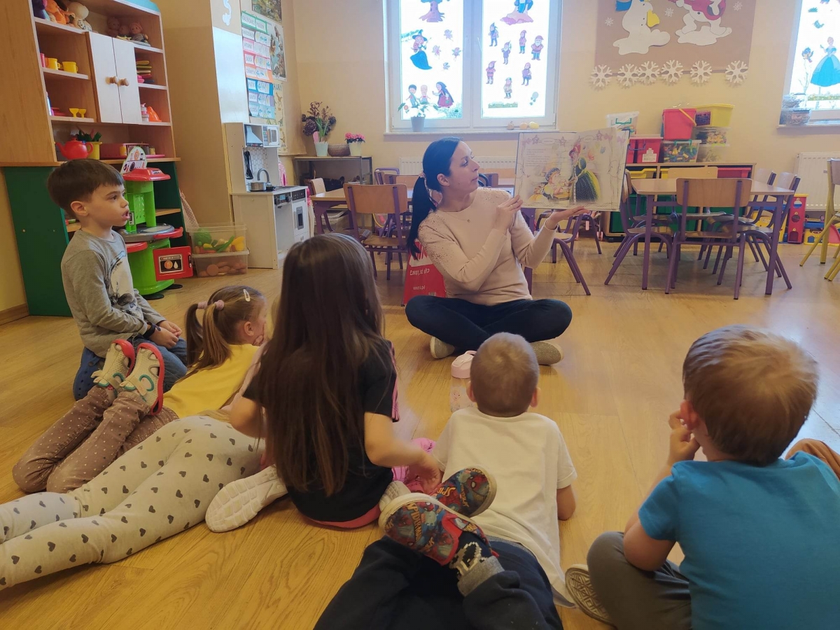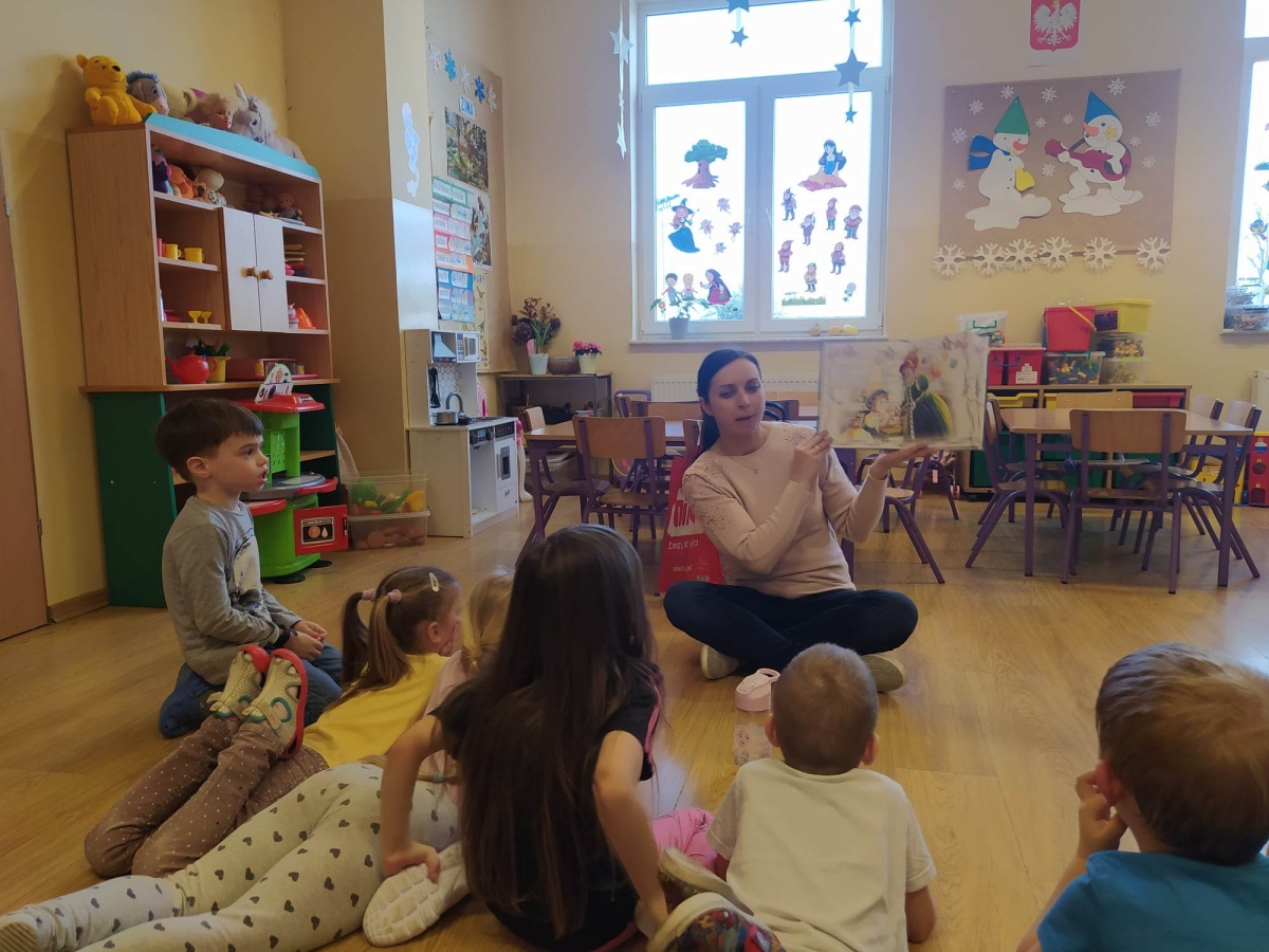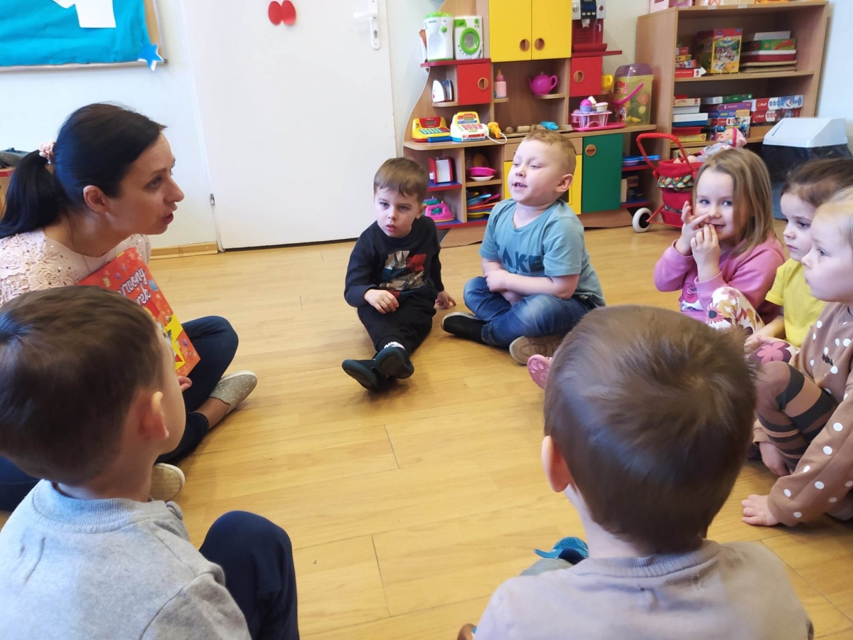 Dziś postawiłam na klasykę. Grupie „Jagódki” (5-latki) przeczytałam bajkę o „Kopciuszku”. Pięciolatki chętnie jej wysłuchały, dziewczęta podziwiały piękną kreację w jakiej Kopciuszek poszedł na bal.Następnie zaprosiłam „Jagódki” do zabawy w kalambury. Pokazywane były hasła z kategorii zwierzęta, taki był pomysł dzieci. Większość haseł udało się odgadnąć w szybkim czasie, ale były takie, które wymagały dużej uwagi i skupienia. Grupa „Biedronek”(4-latki) wysłuchała bajki o „Czerwonym Kapturku” oraz książeczki M. Boćko – Mysiorskiej pt. „Tosia i Julek uczą się dzielić”. Porozmawialiśmy o bohaterach książeczki, którzy zrozumieli, że dzieląc się z innymi mogą więcej skorzystać.