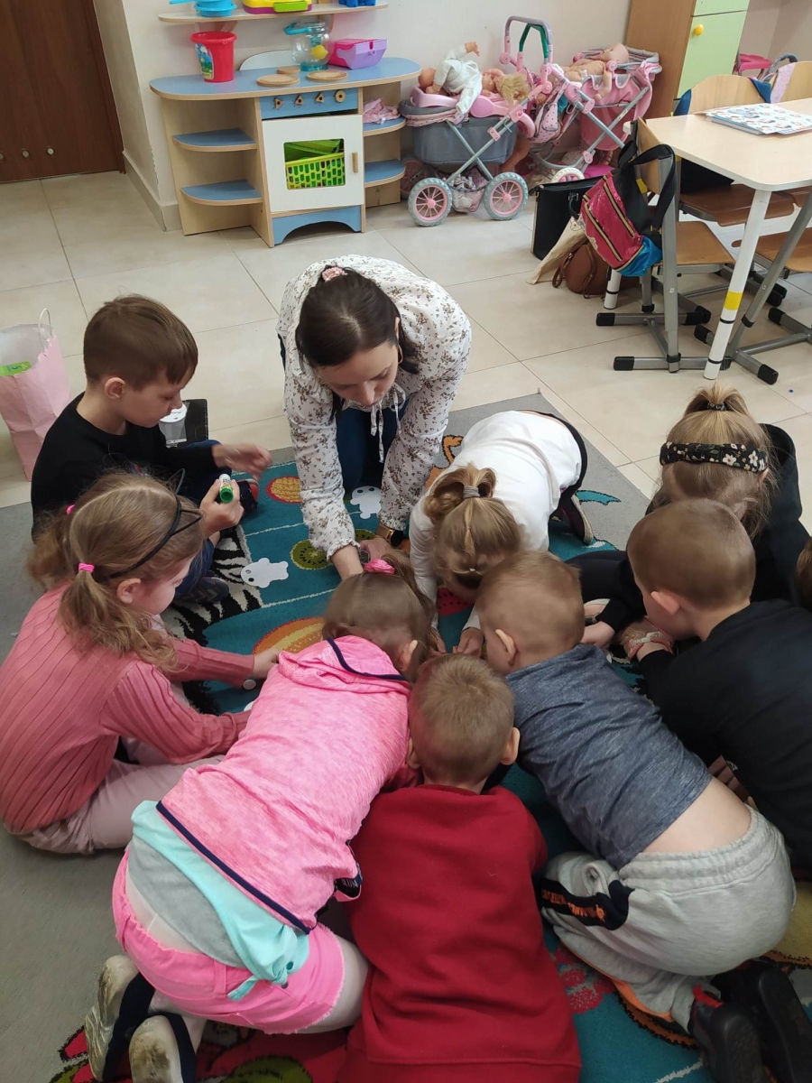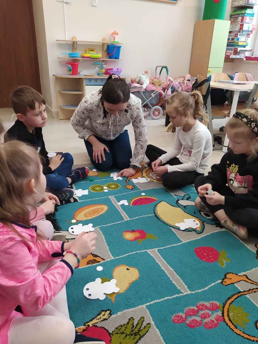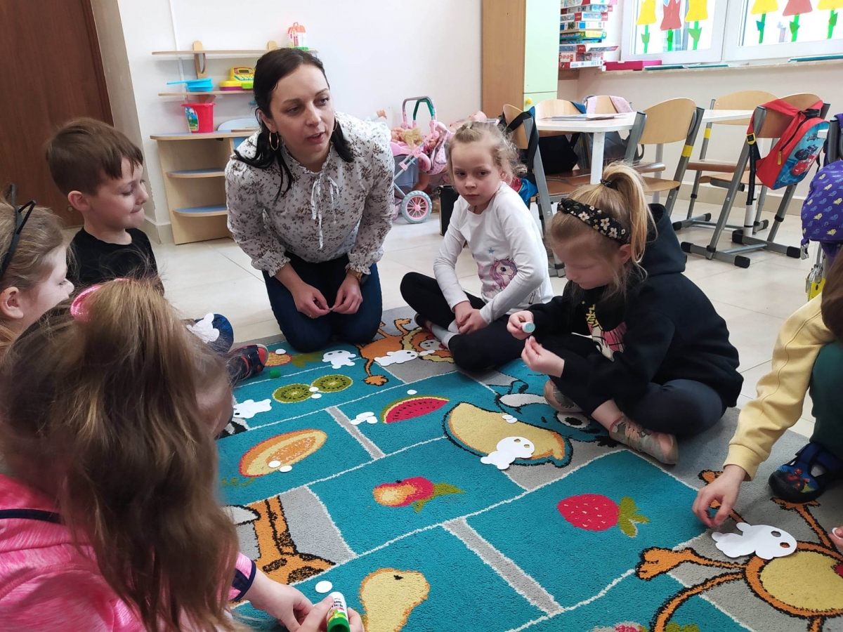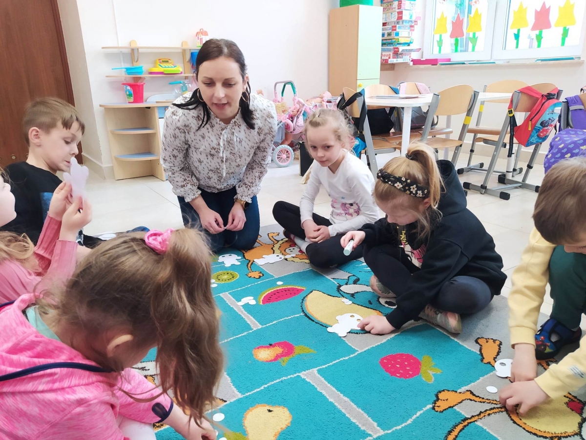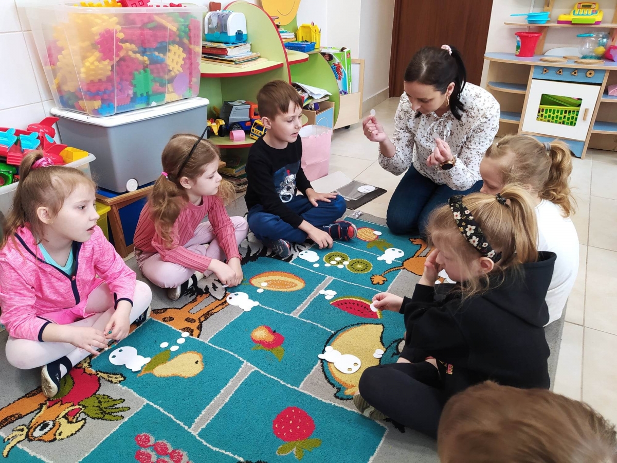 Podczas dzisiejszego spotkania z dziećmi w Oddziale i Punkcie Przedszkolnym w Nowym Grabiu postawiłam na zabawę.