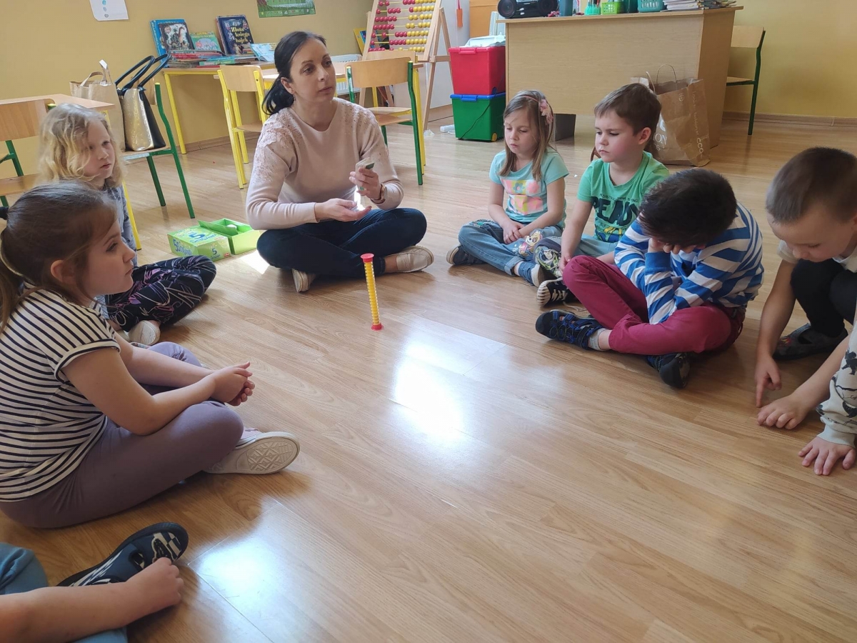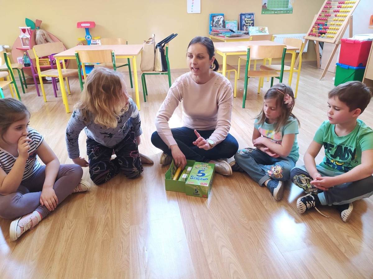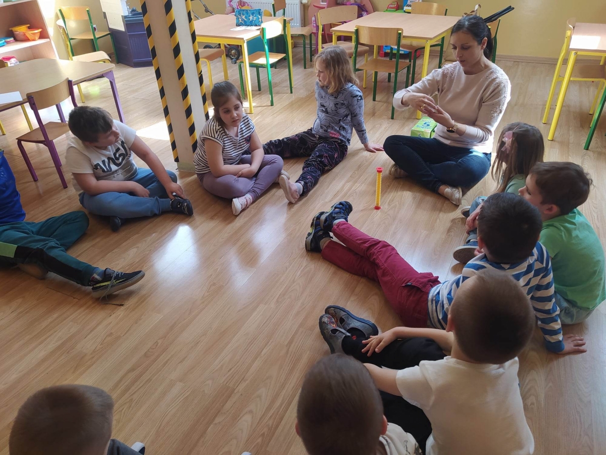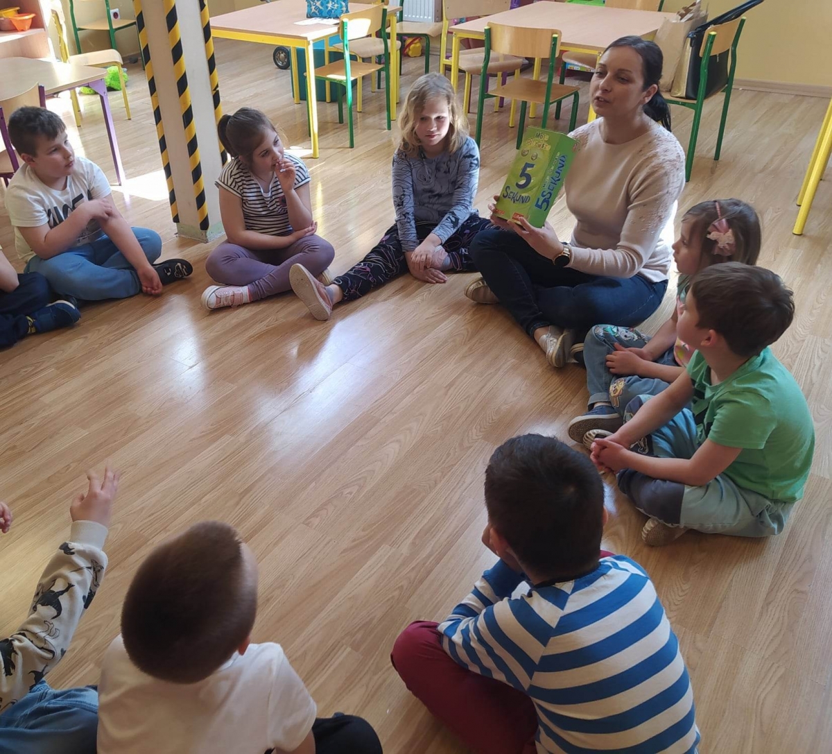 Zaproponowałam dzieciom zabawę w „Grę w 5 sekund”. Podzieliłam grupę na dwie drużyny, objaśniłam zasady i rozpoczęliśmy zabawę. Pytanie, które zadawałam uczestnikom zawierały również trudniejszy wariant, który można było sobie wybrać. Dziewczęta grały ostrożnie lecz większość chłopców zdecydowała się na wersję trudniejszą. Grupa świetnie sobie poradziła. Pochwaliłam wszystkich za ogromne zaangażowanie, wiedzę oraz odwagę.