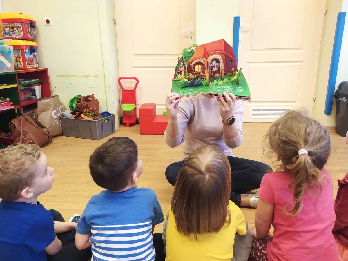 „Smerfom” przeczytałam bajkę pt. „Pinokio” z serii książeczek rozkładanych 3D. Dzieci czytały wspólnie ze mną – ja zajęłam się treścią a Przedszkolaki dotykiem elementów, które zmieniały swoje położenie , gdy poruszałam książeczką. „Pinokio” wzbudził ogromne zainteresowanie.