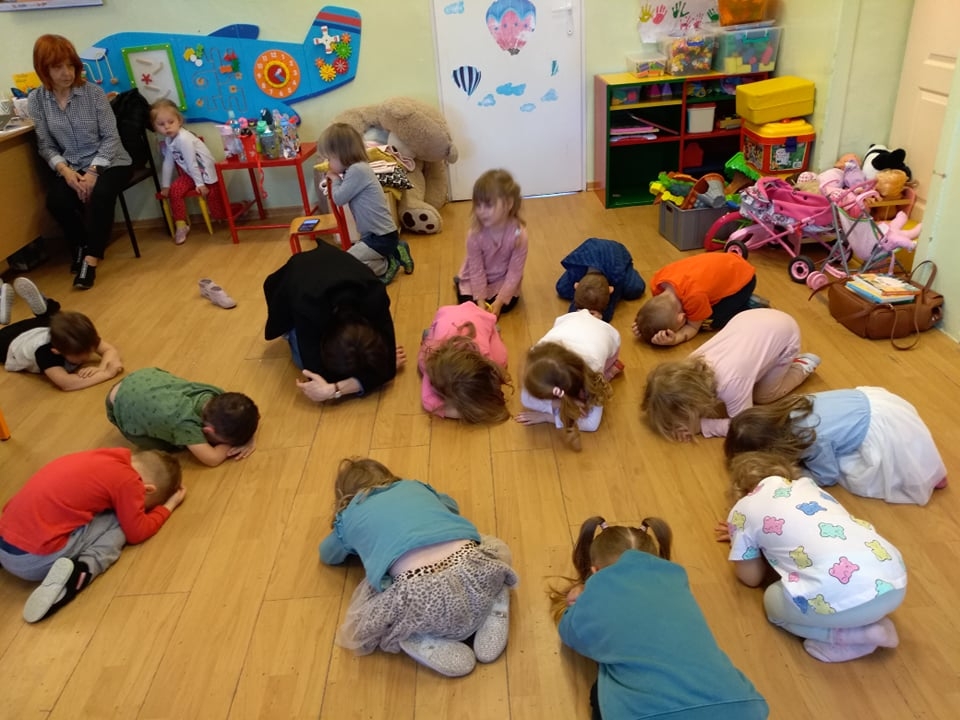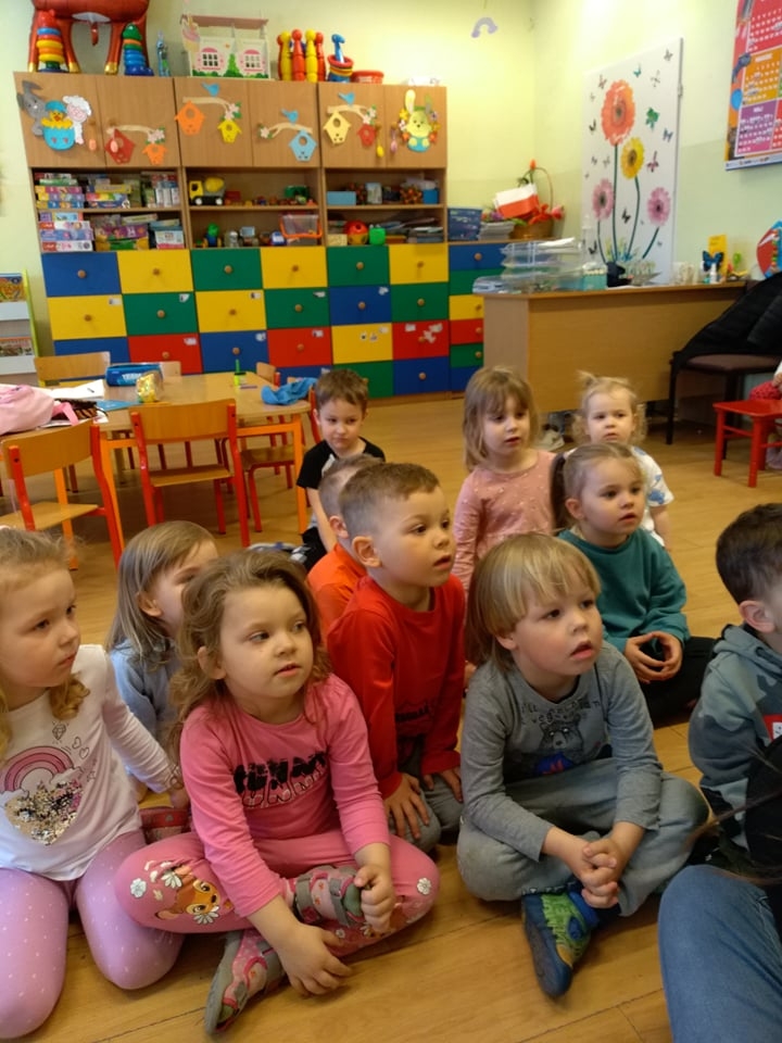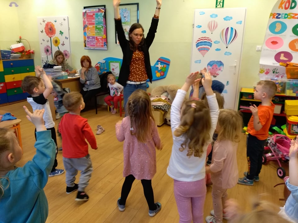 Na koniec maluchy naśladując rozwijające się kwiaty wzięły udział w zabawie ruchowej nawiązującej do wiosny.