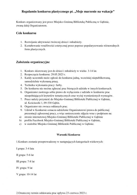 Konkurs jest skierowany do dzieci i młodzieży w wieku 3-14 lat.