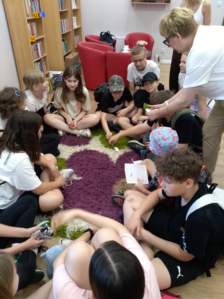 W dniu 01.06.2023 r. Miejsko-Gminna Biblioteka w Gąbinie była jednym z punktów, jakie odwiedziło 6 klas ze Szkoły Podstawowej im. M. Konopnickiej w Gąbinie podczas zabawy w „Podchody”. Trzy klasy czwarte: IV a, IV b, IV c oraz trzy klasy V: Va, Vb, Vc miały do wykonania zadanie przygotowane przez Bibliotekarki. Każda z grup zbierała punkty, maksymalnie można było uzyskać ich aż 3. Jeśli zadanie zostało wykonane bezbłędnie drużyna zdobyła maksymalną ilość punktów, jeśli był problem z odpowiedziami – 2 lub 1 punkt.